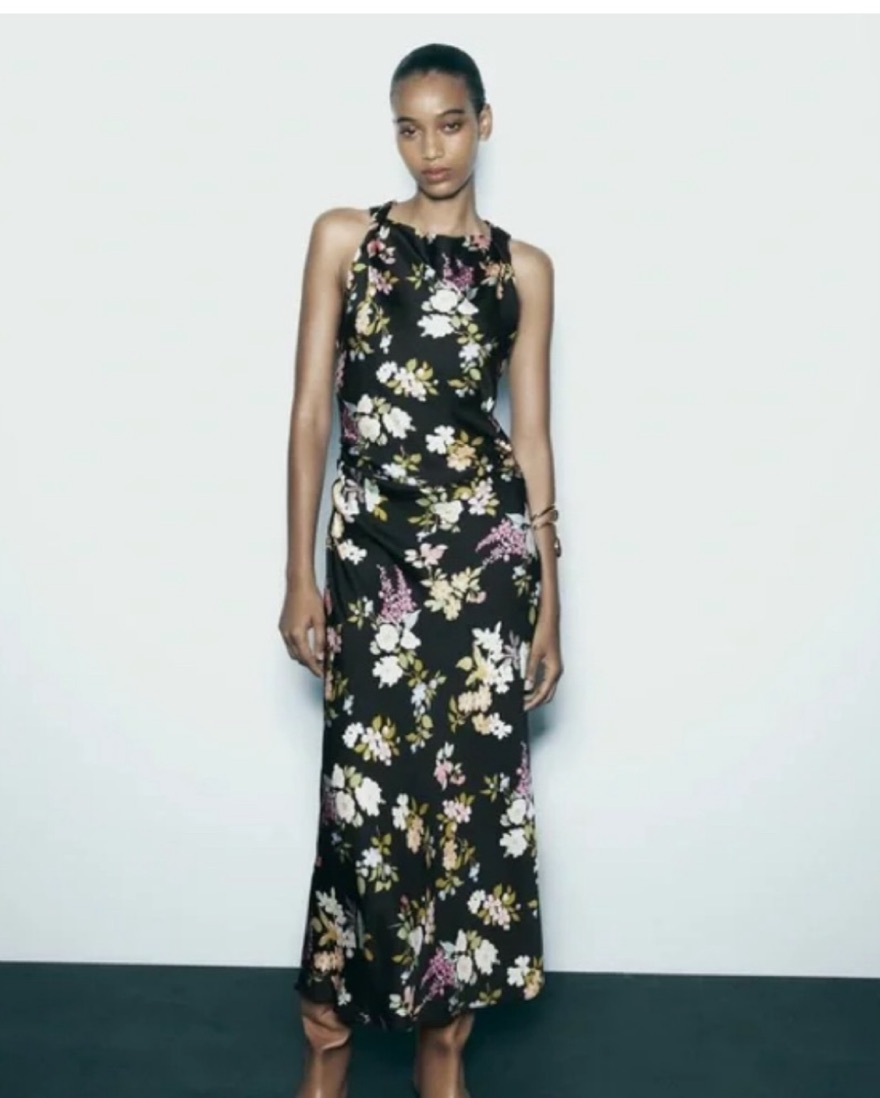 Zara Black And Floral midi Dress