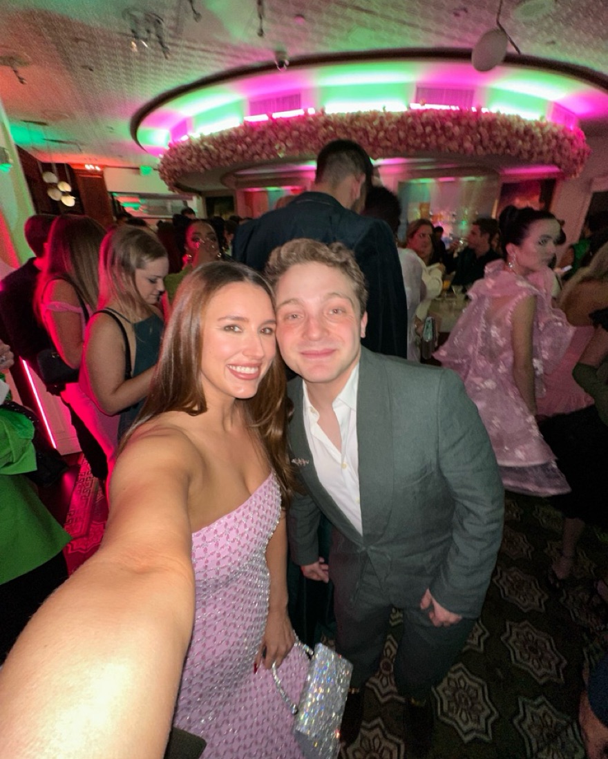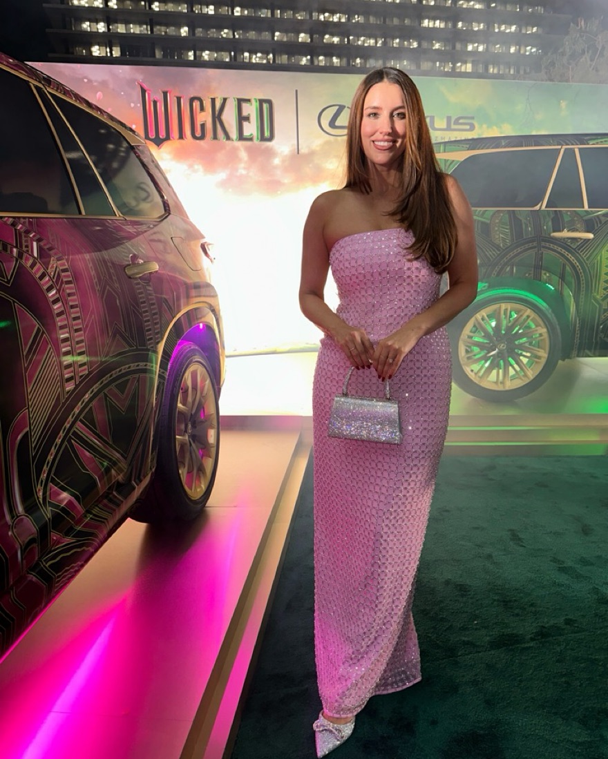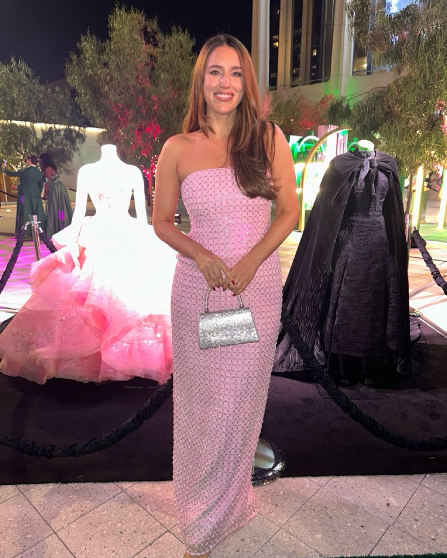 Worn to the Wicked premiere in LA, this baby pink Simkhai gown is perfect for formal or black tie events like premieres or weddings. It has an internal corset for structure and detailed pearl and silver embellishments. Showstopper!
