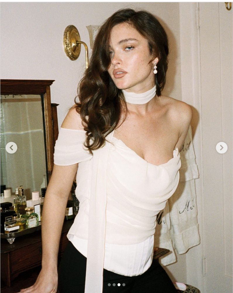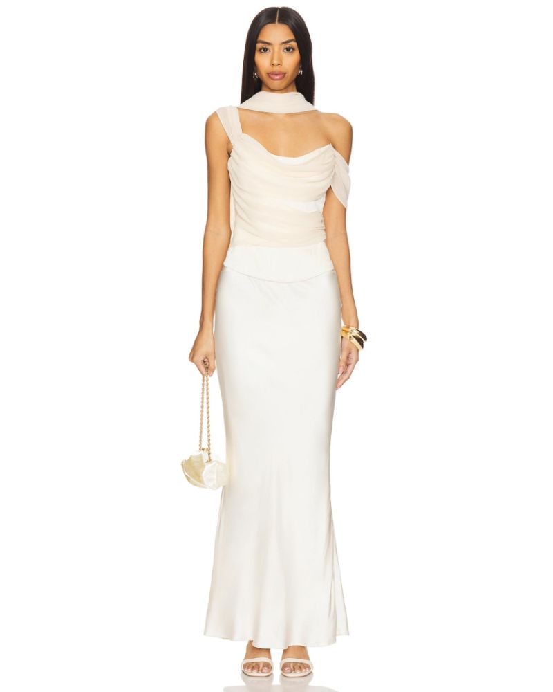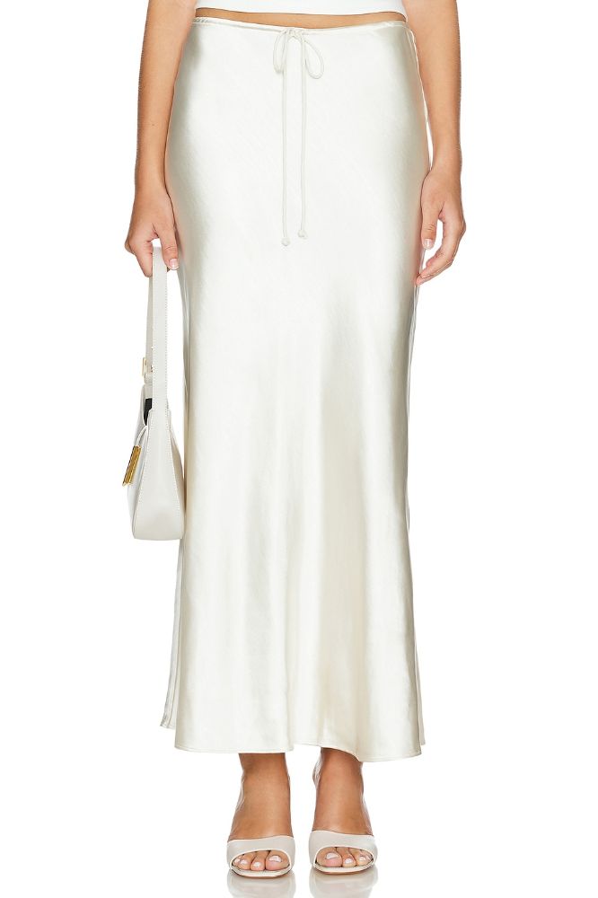 Top and bottom both size XS - LPA Adara Corset Top ($198) size XS and L'Academie by Marianna Etienne Midi Skirt in Ivory ($178) size XS. Tags: bridal, white matching set, ivory set, bride, honeymoon, scarf top