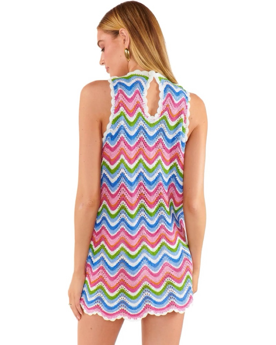Stand out in style wearing the Show Me Your Mumu Sweeney Coverup. It features crew neckline with keyhole detailing on the back, sleeveless style, striped pattern, and mini hem.
