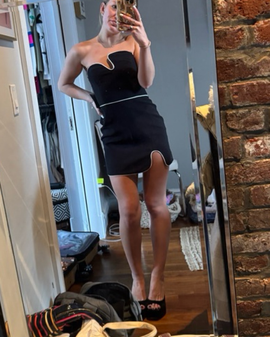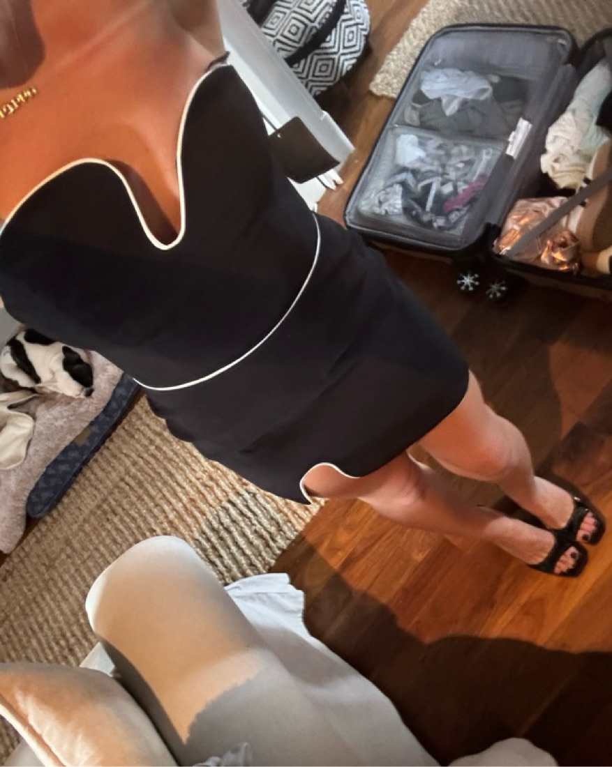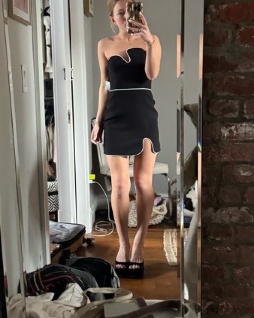 Amanda uprichard puzzle dress with white piping. Super cute for going out or any cocktail-attire events.