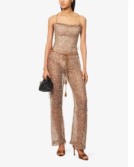 Deva Sequin Knit Trousers and corset in sand. So fun and cute for fun occasions