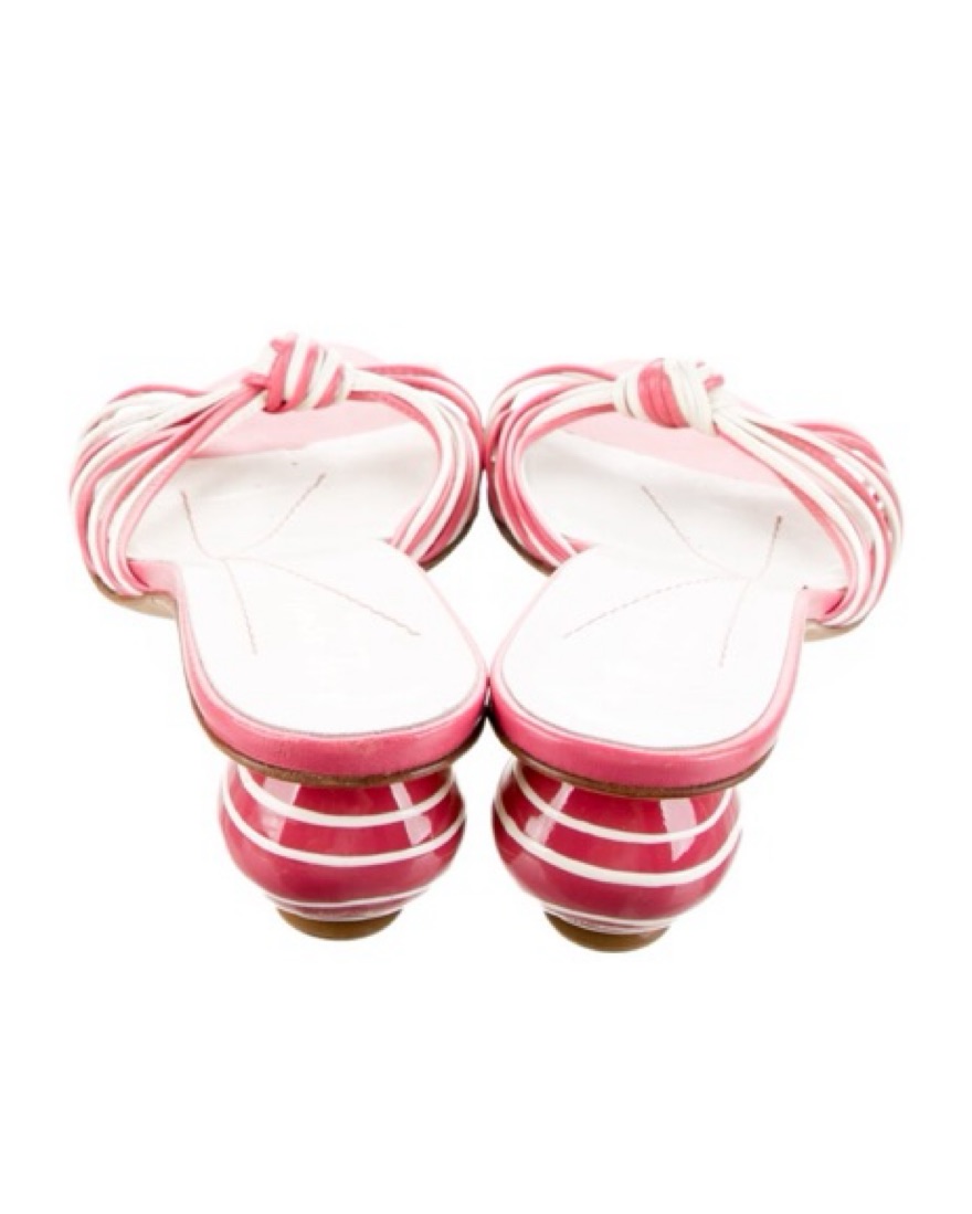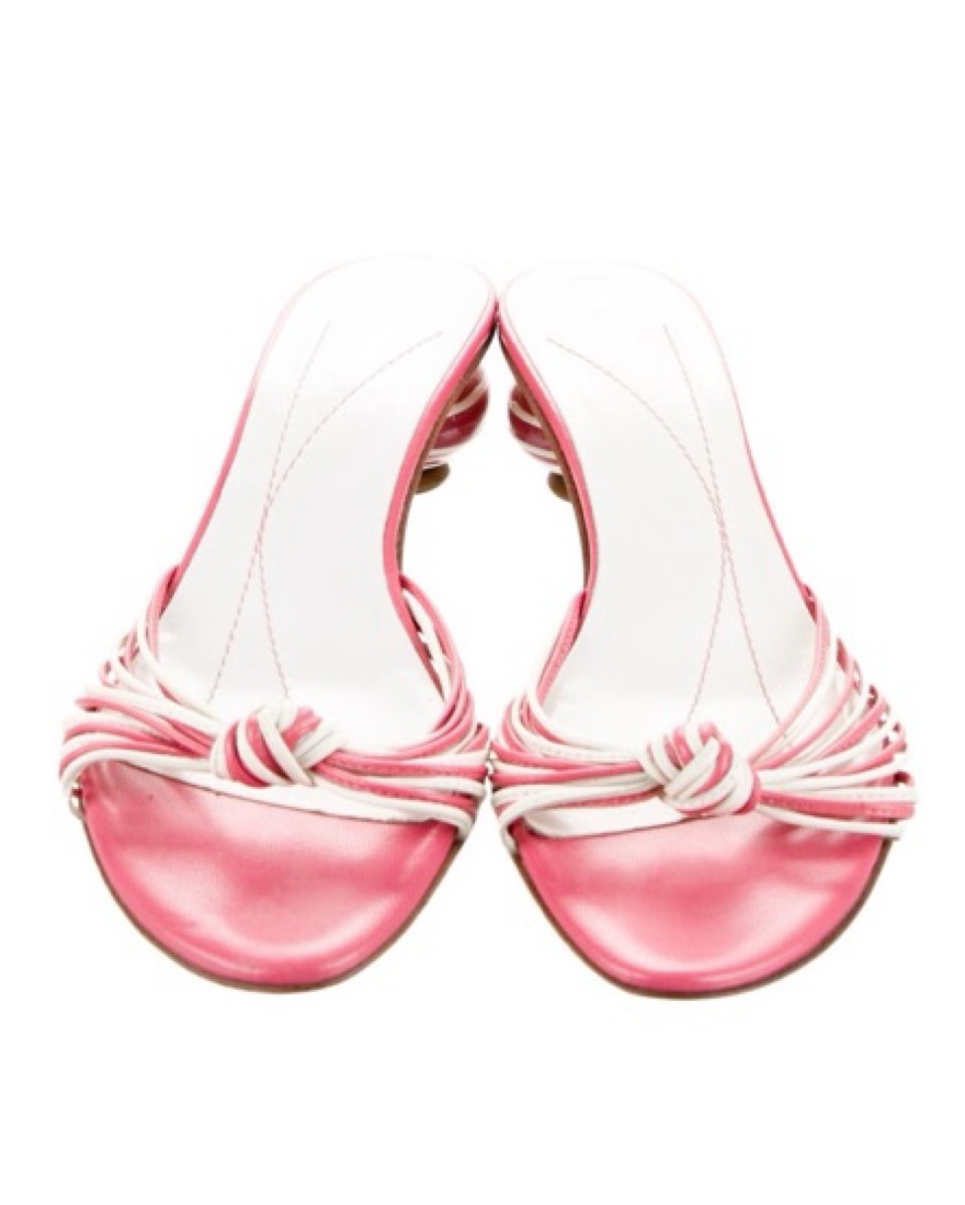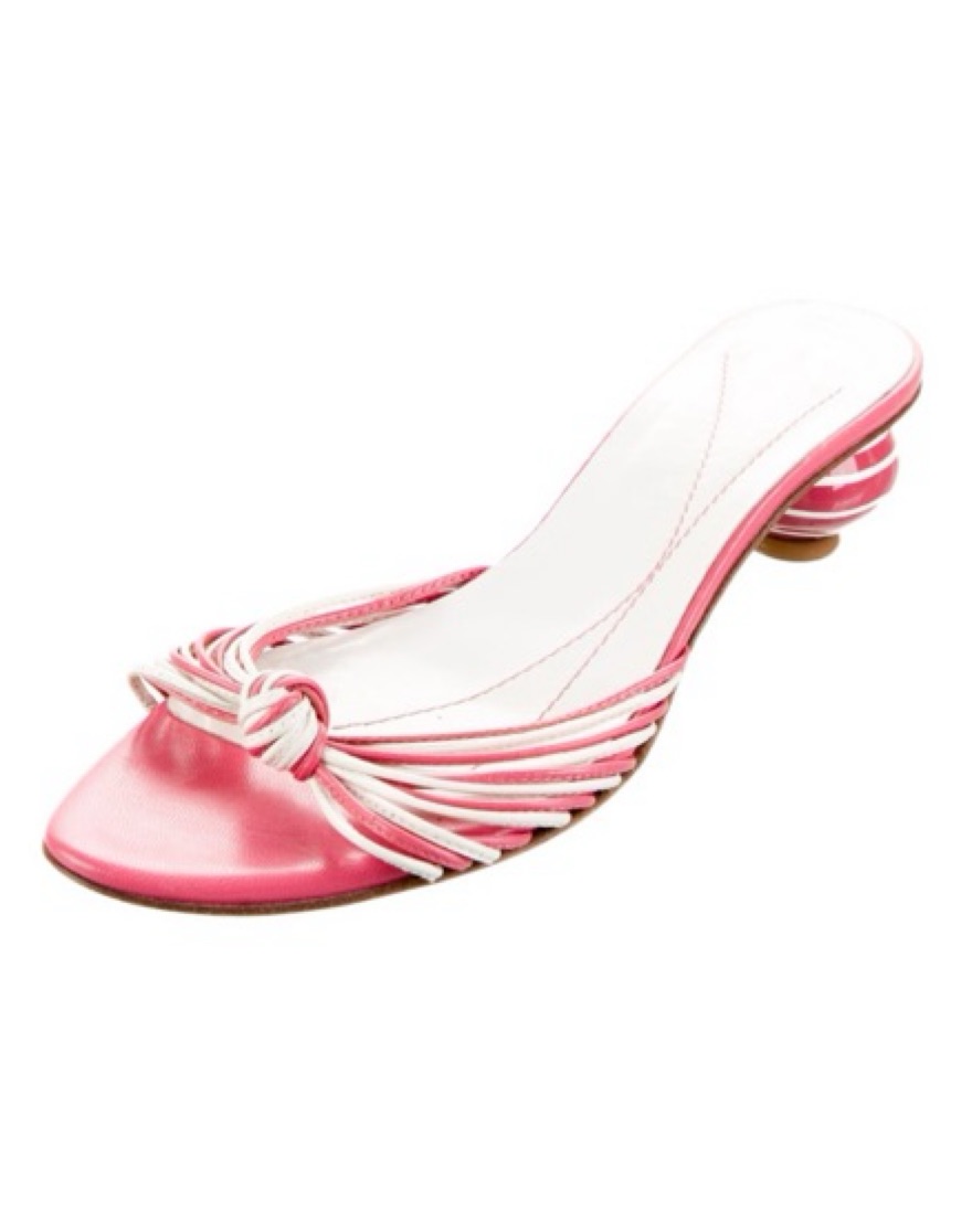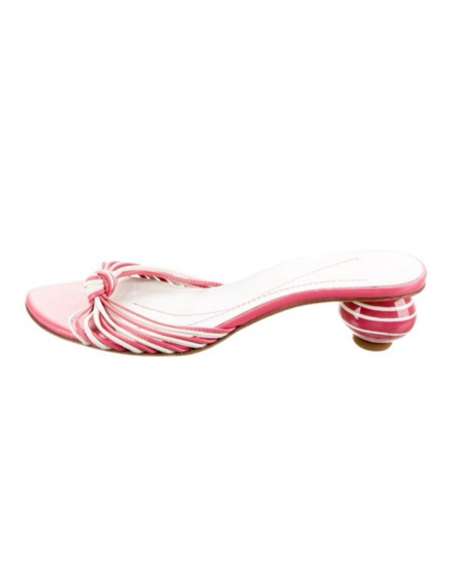 The cutest vintage pink and white slide on kitten heels! Such a fun painted heel and super easy to walk in. Perfect summer shoe! Might not fit wider feet
