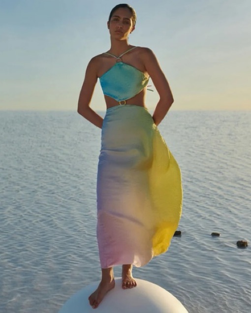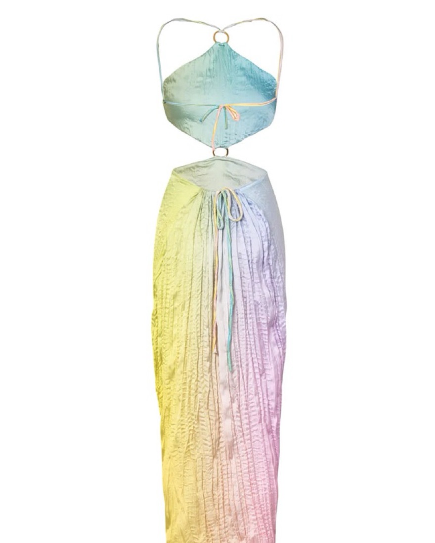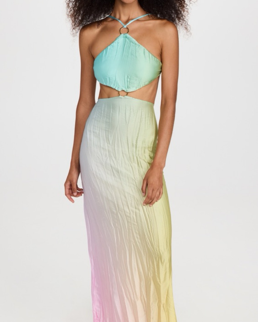 Vibrant ombre maxi dress with cut outs. Note that the cut out is a little uneven, so I had to add a safety pin