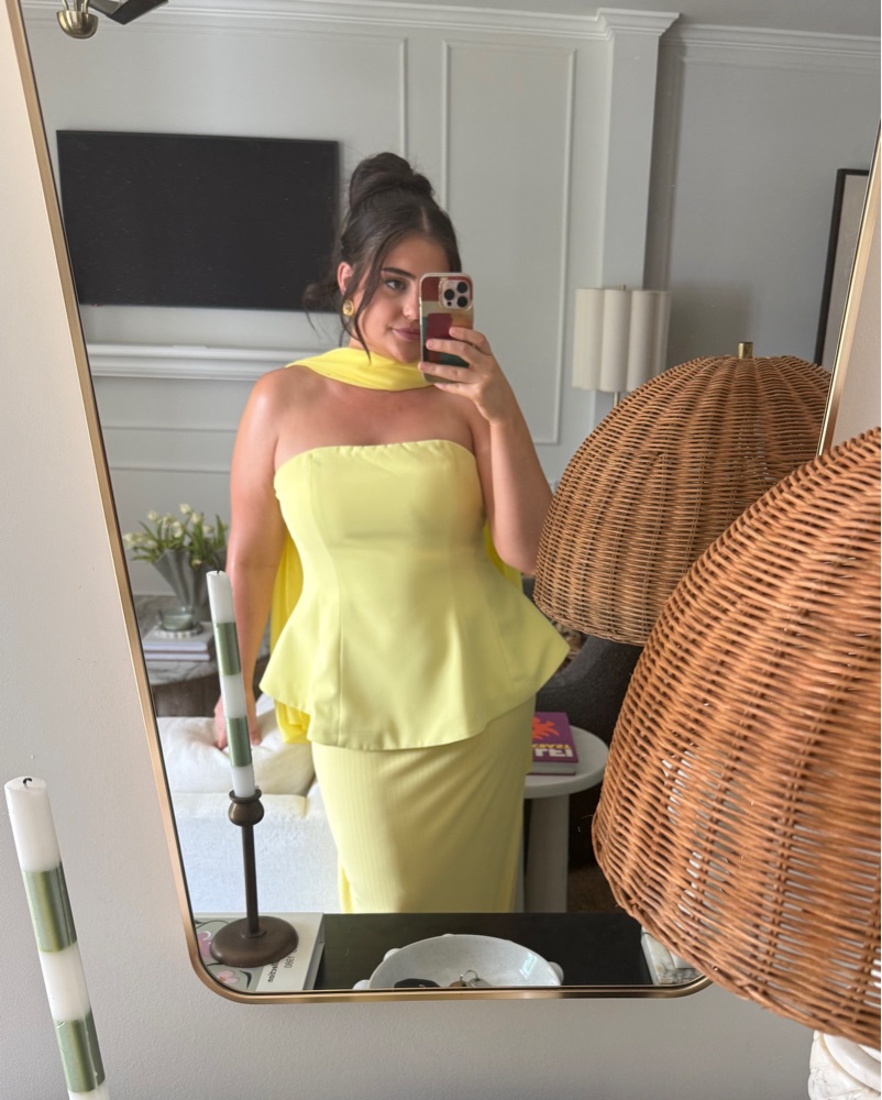 Originally an XL but altered to fit a M-L! Beautiful yellow. Also have a matching neck scarf to go with!