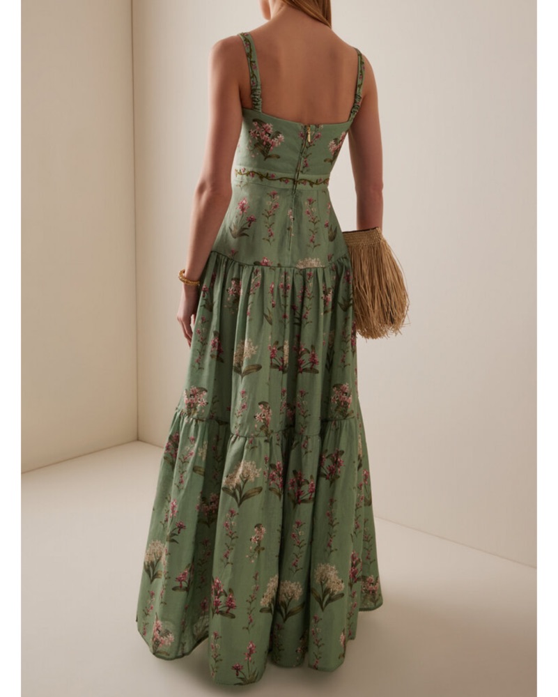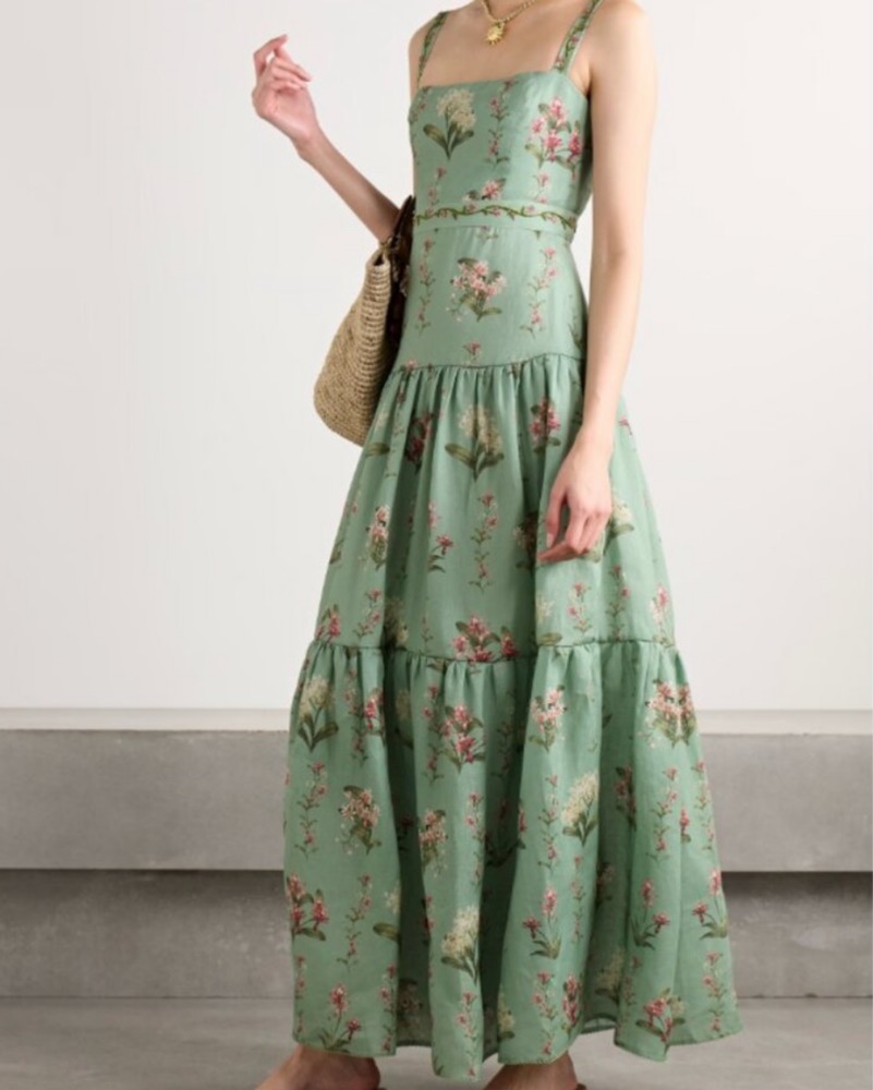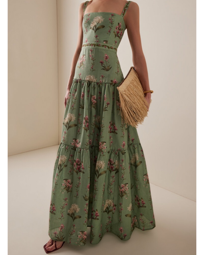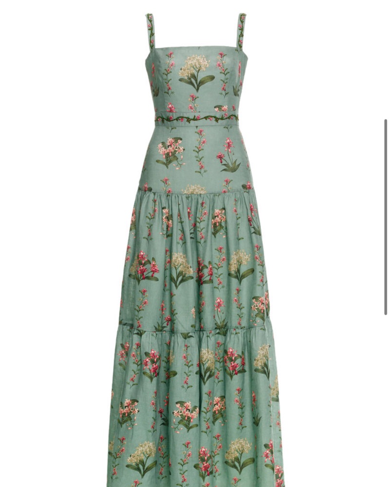 Agua by Agua Bendita Lima Tiered Linen Maxi Dress. The perfect wedding guest dress- I got so many compliments! From their 2025 collection. The bodice of this dress does not have stretch, so when in doubt size up