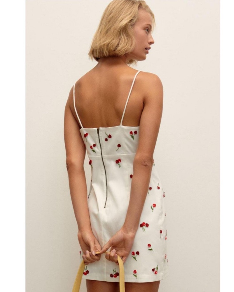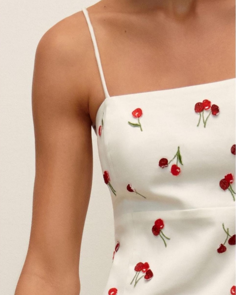 Spaghetti strap mini dress w/ 3D cherries and zip up back!
