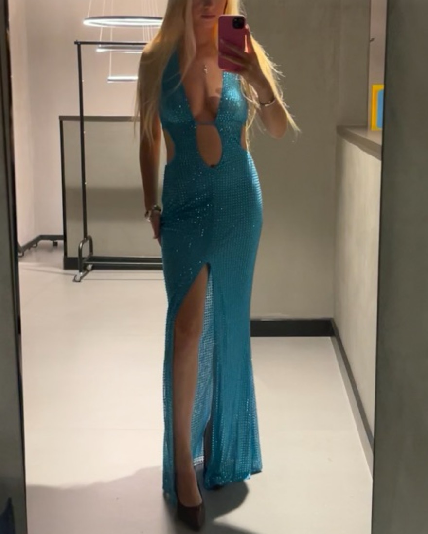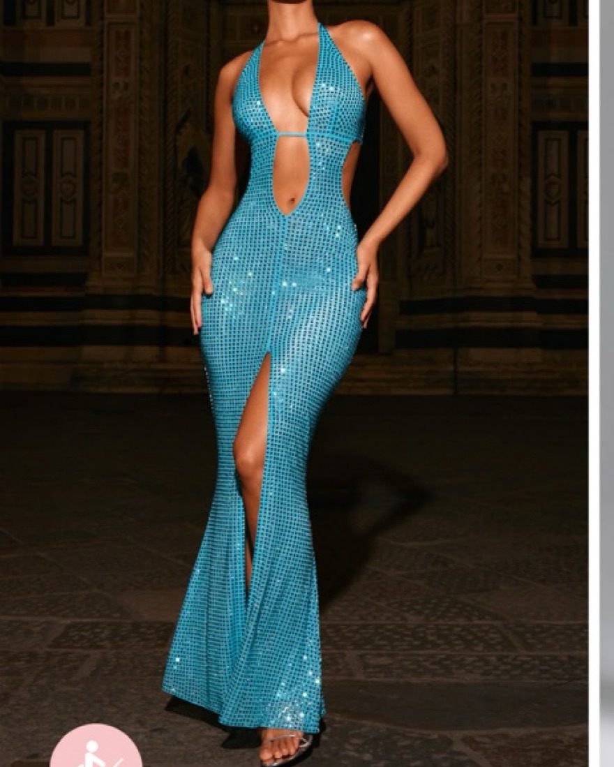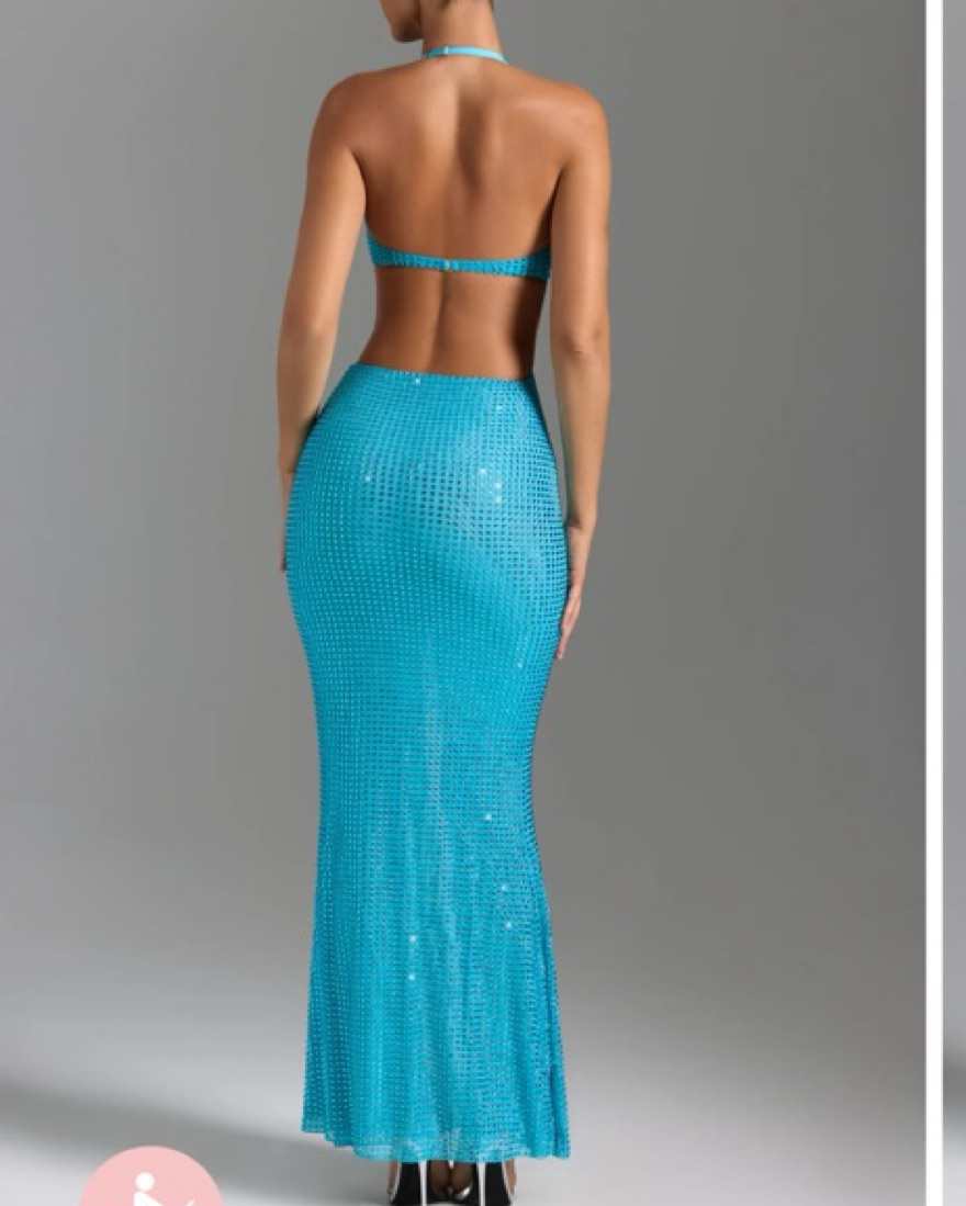 Amberly Embellished Cut-Out Halterneck Maxi Dress in Aqua Blue (loved this dress but unfortunately too big for me)
