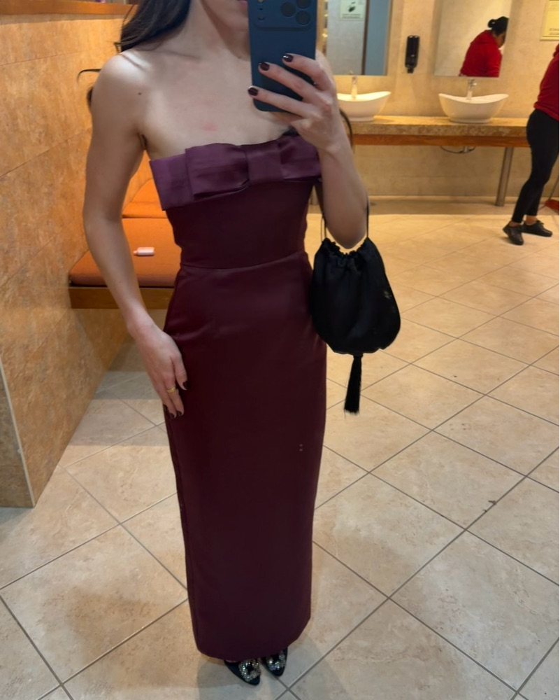 This elegant burgundy maxi dress is perfect for a formal event or black-tie occasion. Fits xs perfectly and xxs more comfortably