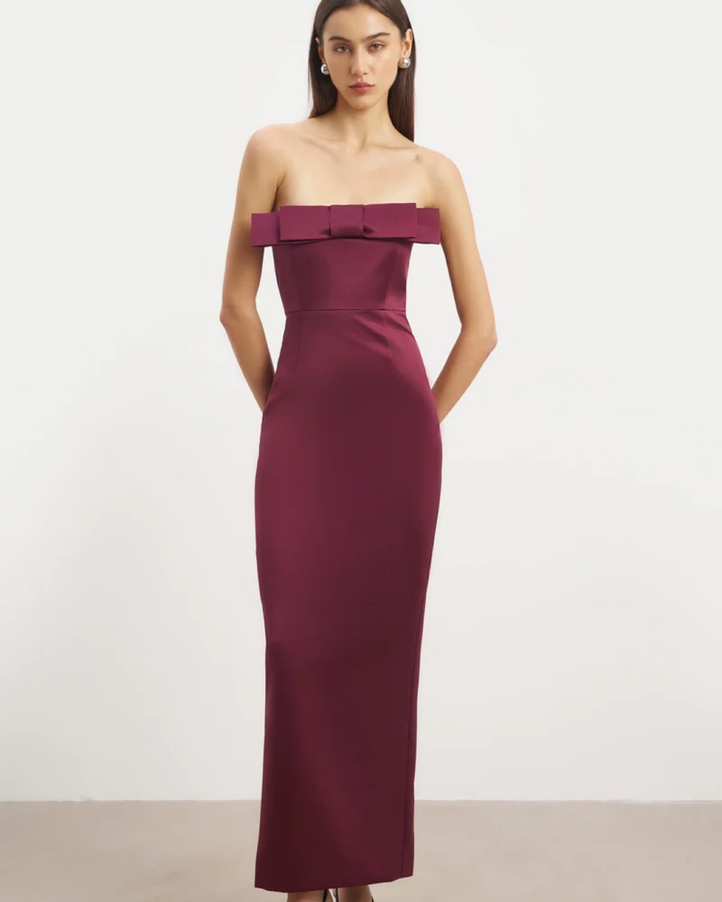 BOA Burgundy Strapless Maxi Dress