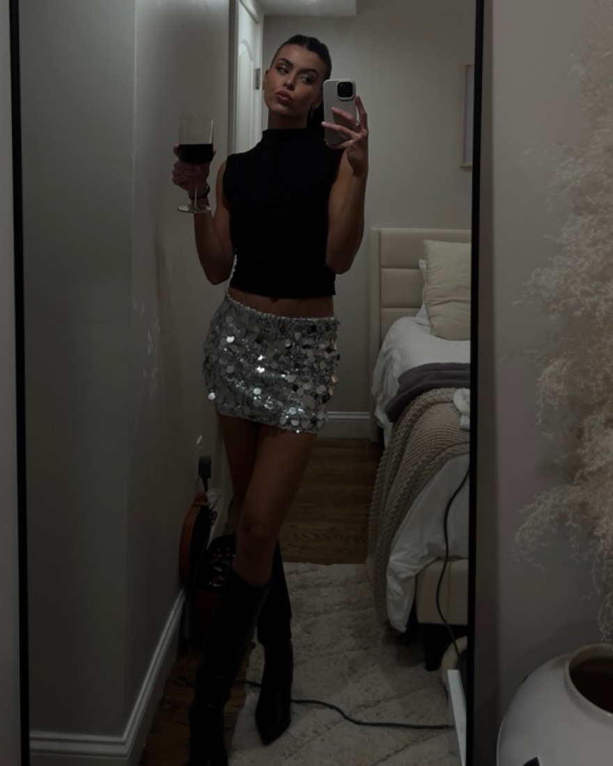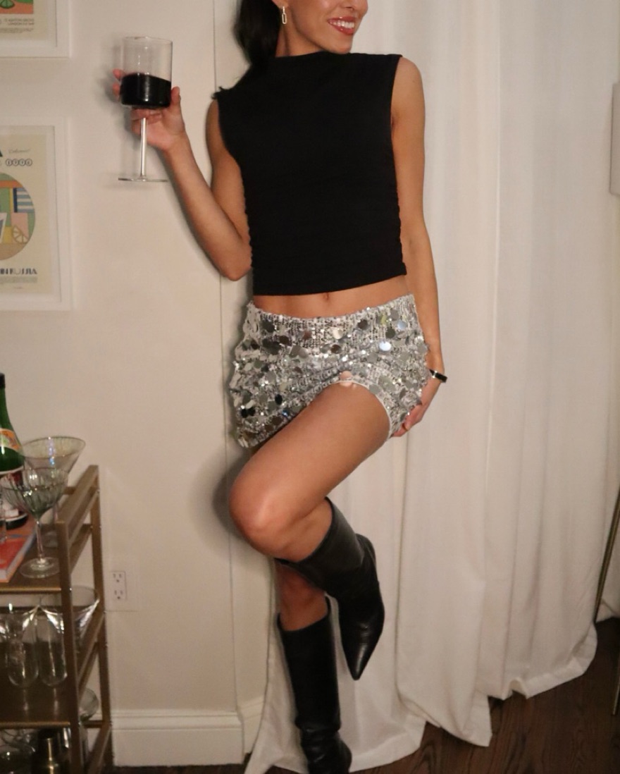 Silver Sequin Mini Skirt