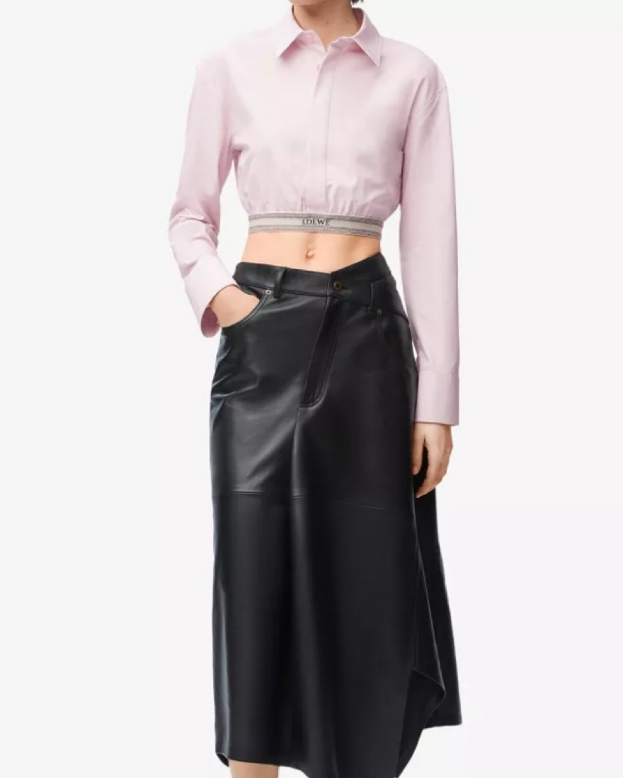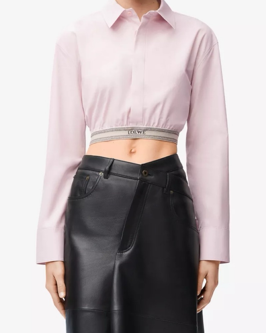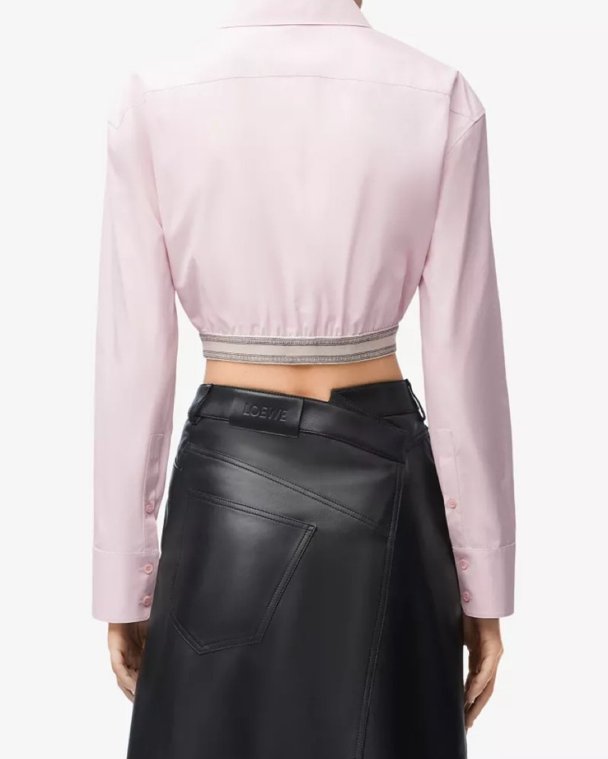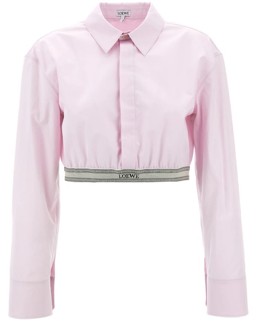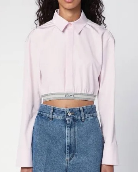 This Loewe cropped pink shirt is perfect for a night out or a chic daytime look. Its tailored silhouette and stylish Loewe branding make it a must-have item. Size 41