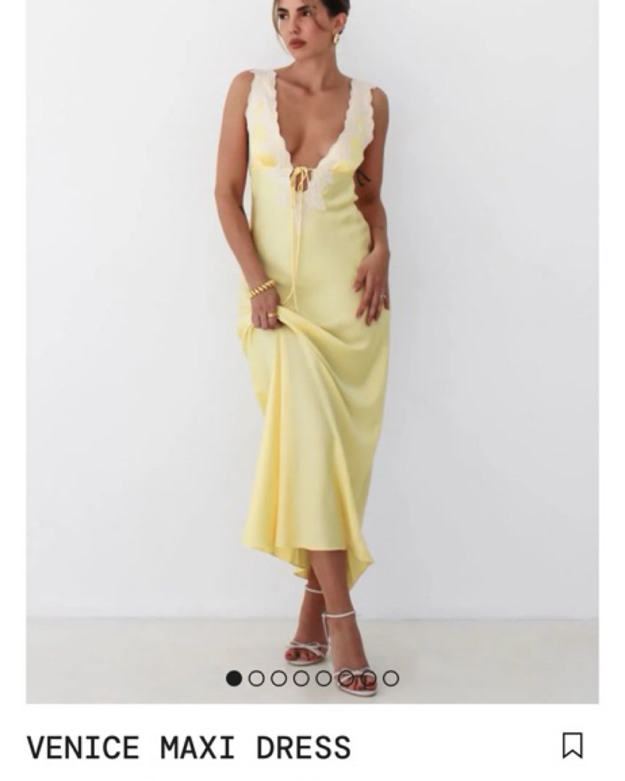 Size Small Venice Banana silky maxi dress. Petite friendly but also looks good on tall. CURRENTLY GETTING DRY CLEANED PLS DONT RENT
