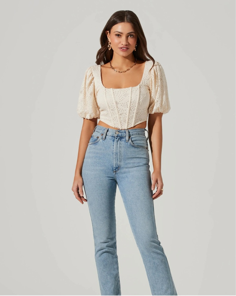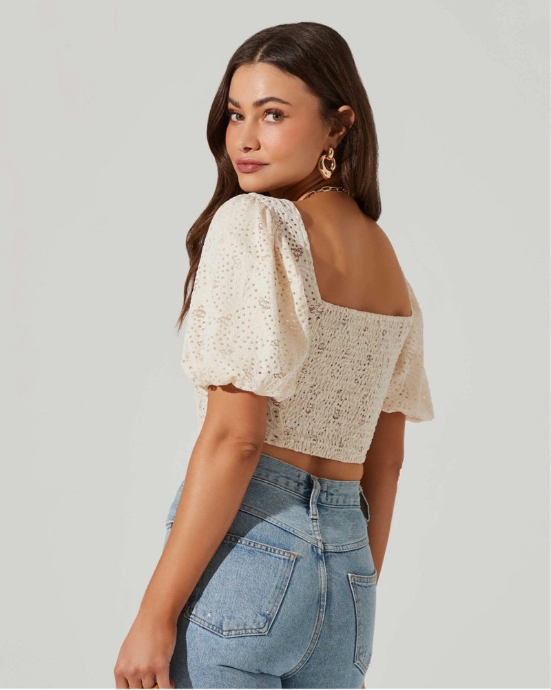 Eyelet Square Balloon Sleeve Bustier by Astr The Label - Pickle