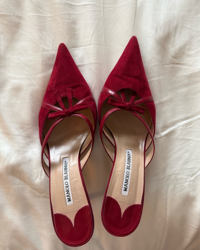Red Suede Manolo Blahnik Heels by Manolo Blahnik - Pickle
