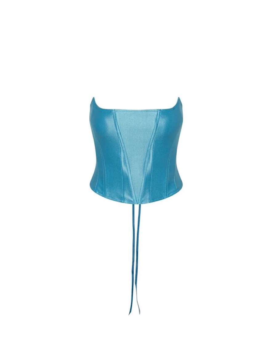 Top: XS. Bottoms: S. I’m 120lbs 34D 5’4” 25 waist and this sizing combo fits me perfectly. Top is adjustable due to corset backing and my setting is more loose in the back! *does not include flower