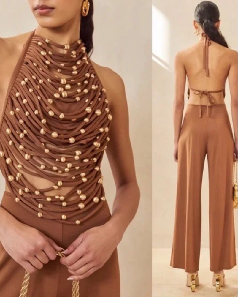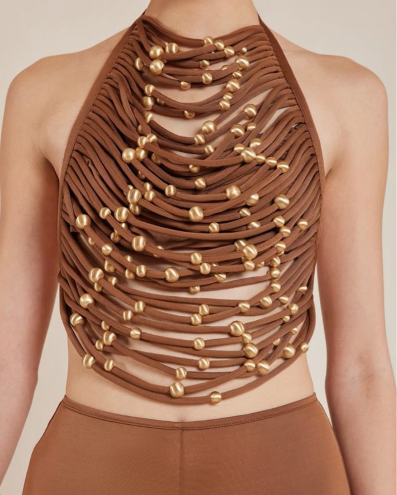 Cult Gaia Jonna beaded top & kora pant brown set. Top size small, pants size 4