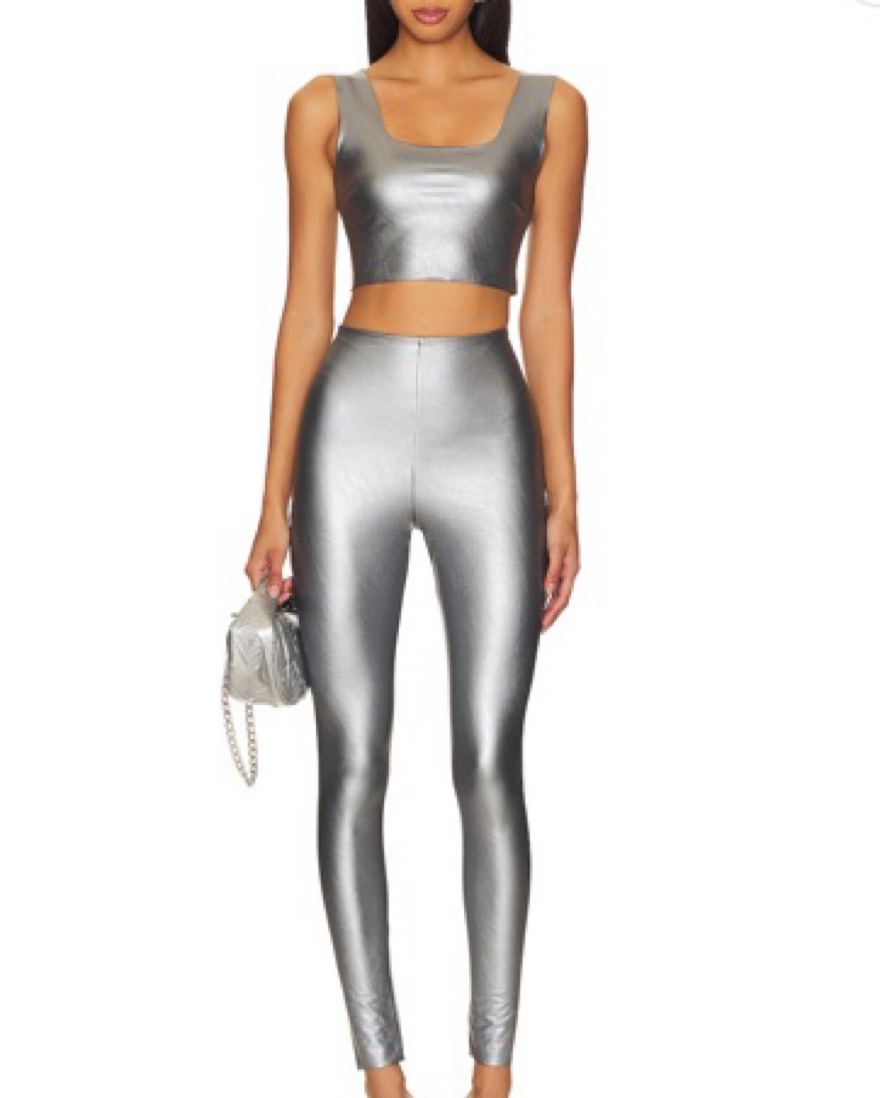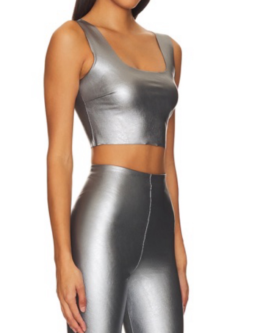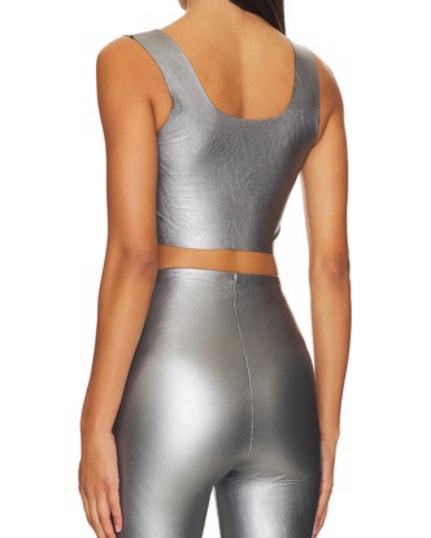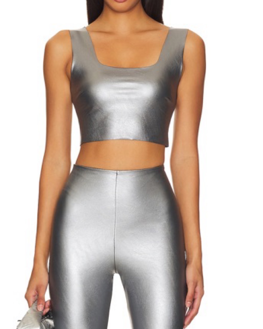 Faux Leather Square Neck Crop Top in Platinum. Size large