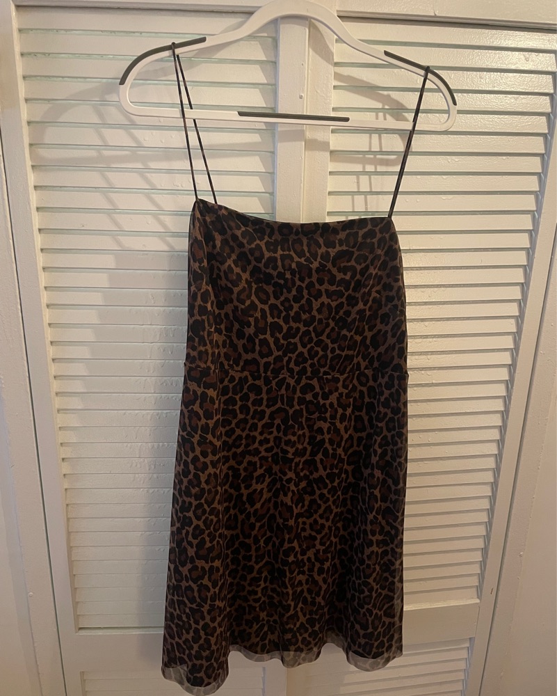 This versatile leopard print dress is perfect for a night out or a casual weekend. The flowy silhouette and mesh fabric make it comfortable and stylish.