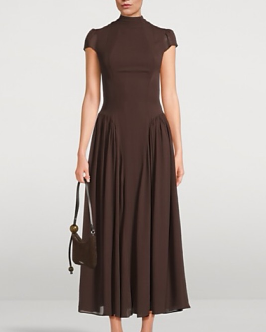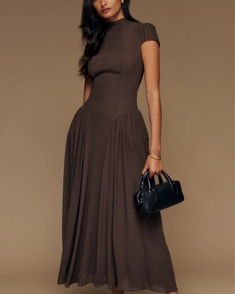 This stunning midi dress is perfect for any formal or semi-formal occasion. The elegant silhouette and rich chocolate brown color create a timeless, sophisticated look.