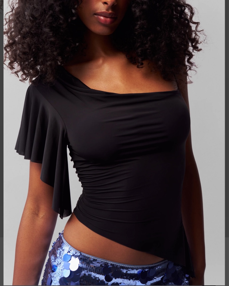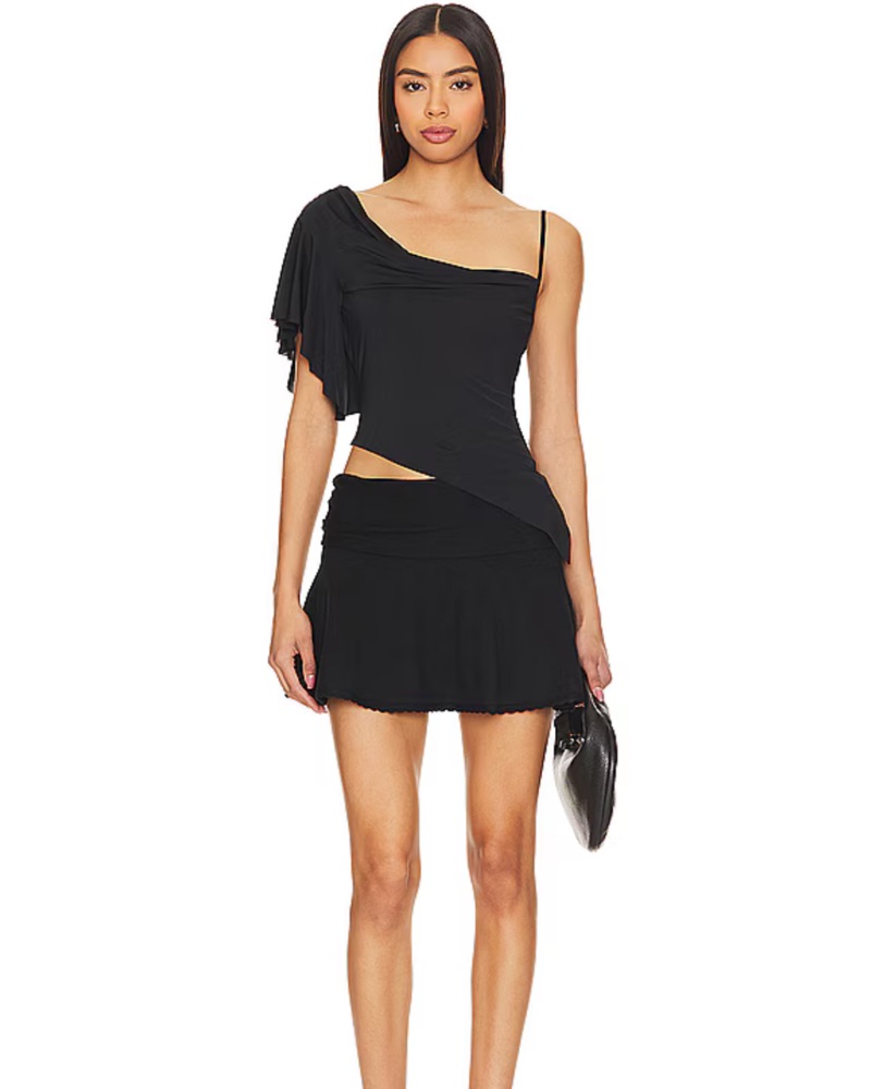 Super chic black set - perfect for a night out! Top is in M, skirt is in size S but is a stretchy lightweight knit material.