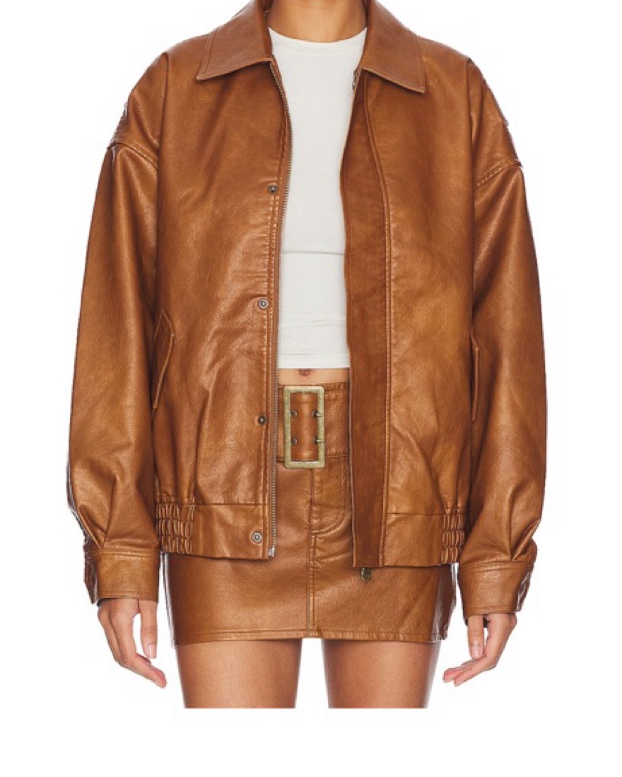 Lioness Brown Leather Jacket And Skirt by Lioness - Pickle