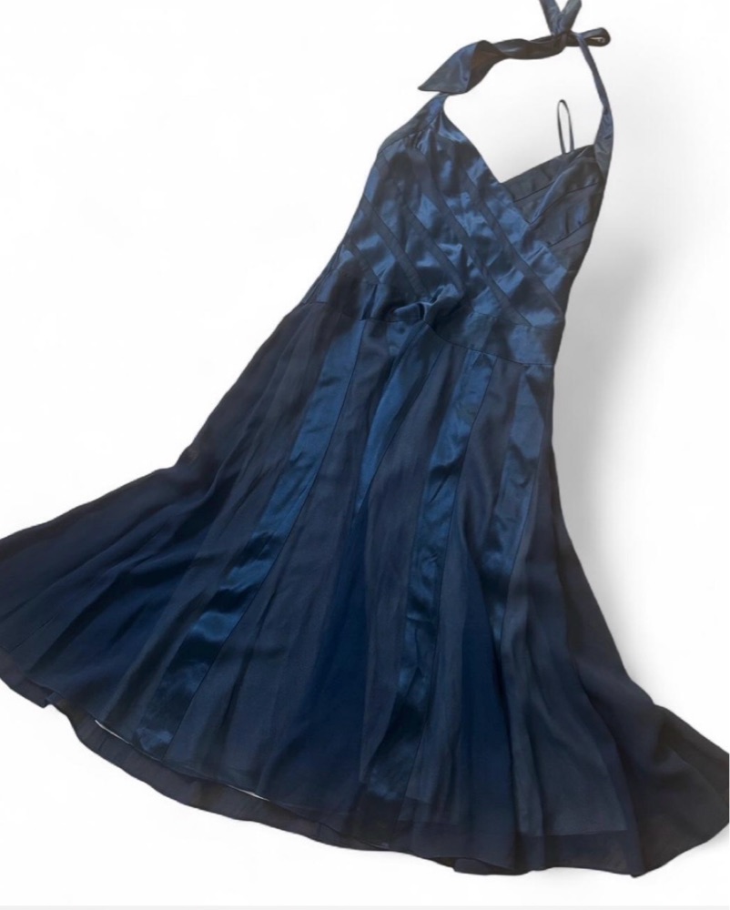 Insnane whimsy goth y2k silk ribbon halter dress by bcbg