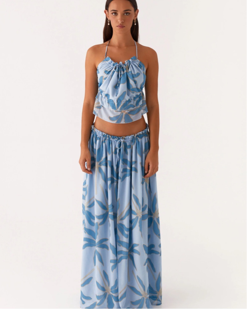 Floral Flowy Matching Halter Top & Skirt by Peppermayo US - Pickle