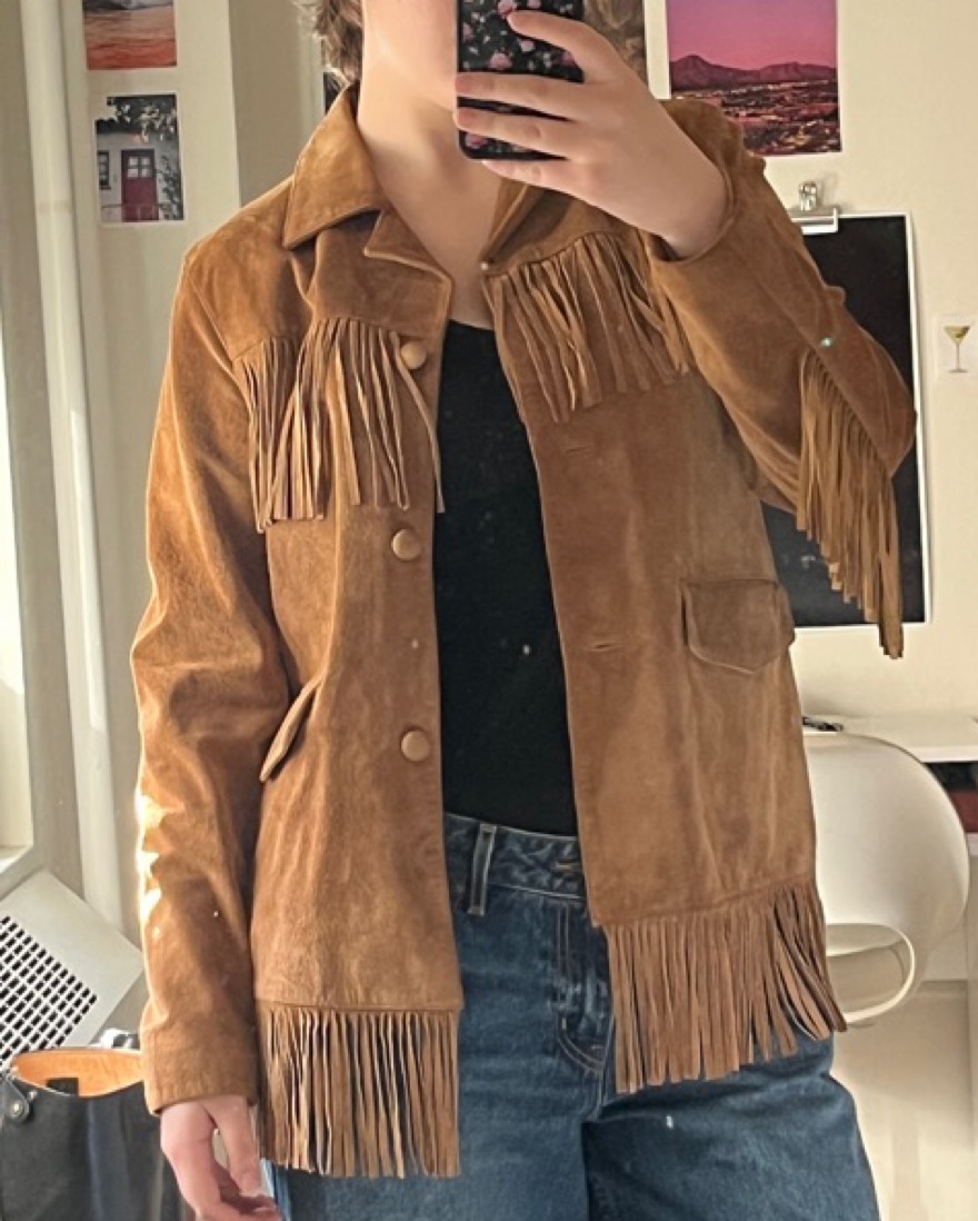 Vintage Suede Fringe Jacket by Vintage - Pickle