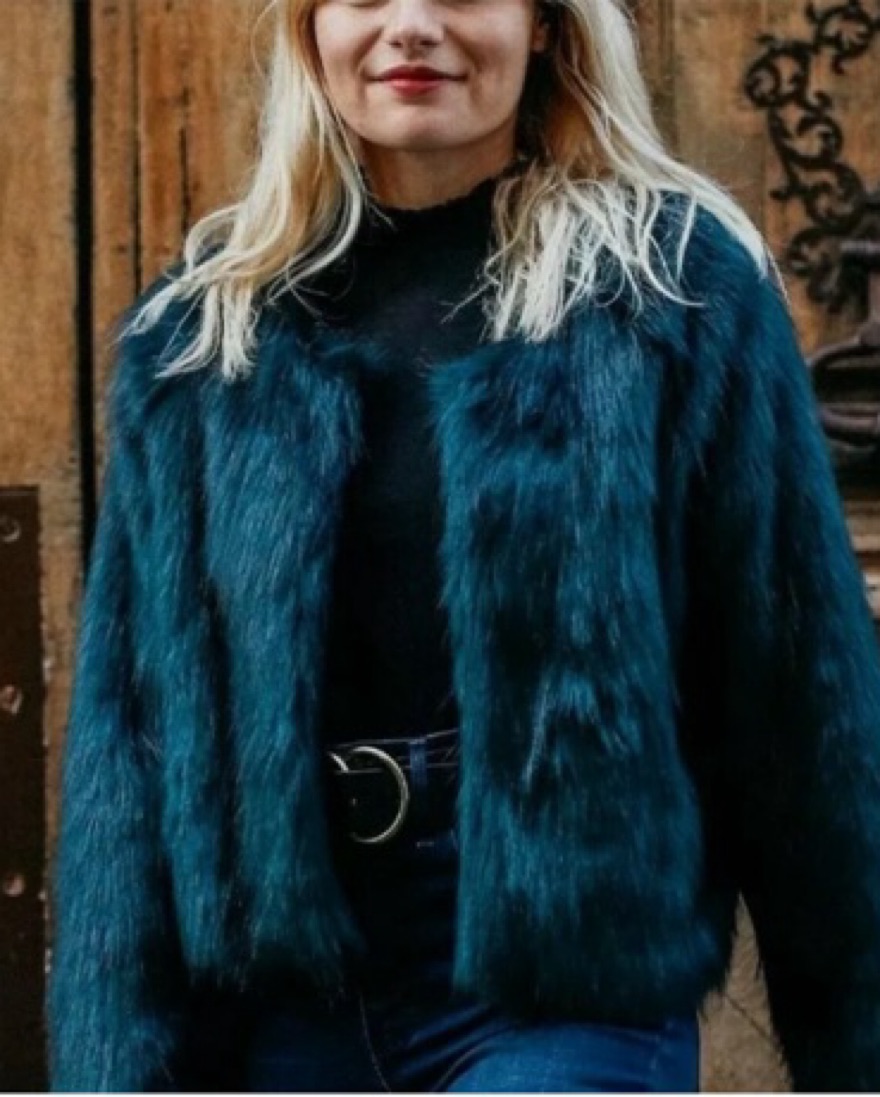Free People Dark Green Faux Fur Coat