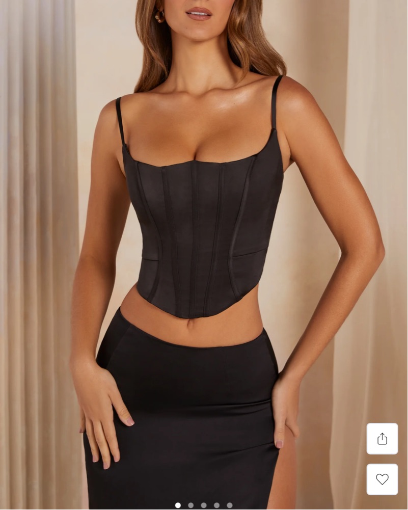 This stunning black corset top features a figure-flattering cutout design, perfect for a night out with friends or a special event. Has ties in back to make it as tight as you want