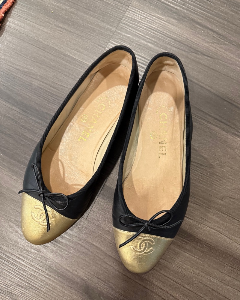 Chanel Black & Gold Flats Color-Black. Size 7. Super comfortable and flattering.