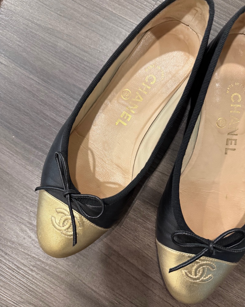 Chanel Black & Gold Flats Color-Black 37 by Chanel - Pickle