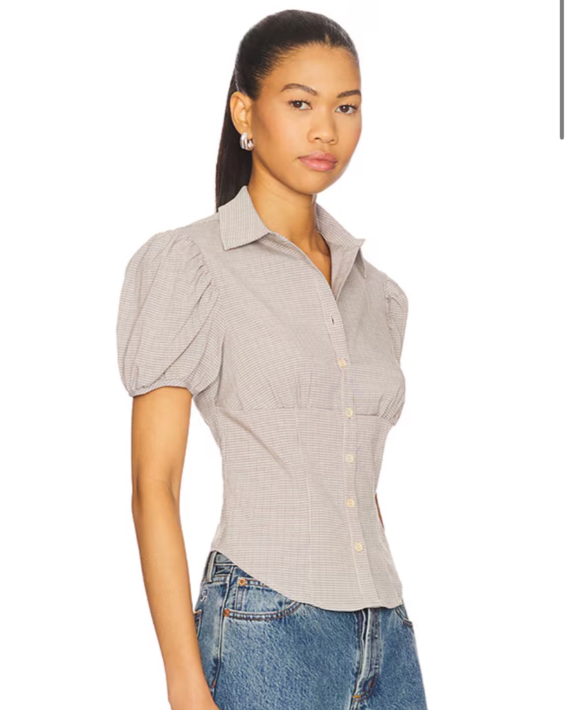 Mon Cheri Blouse in Beige Gingham by Lioness - Pickle