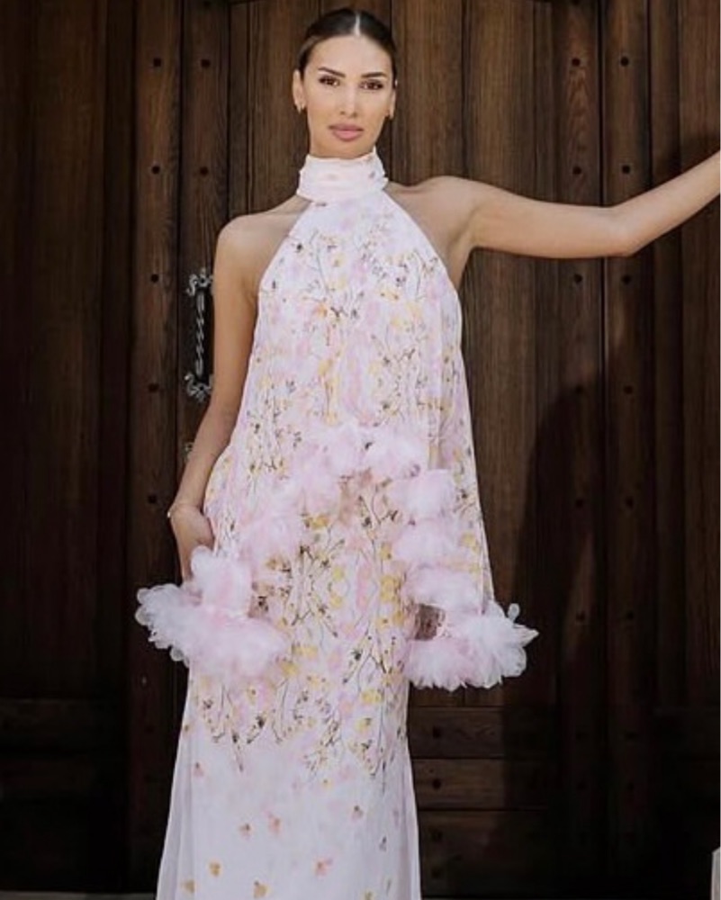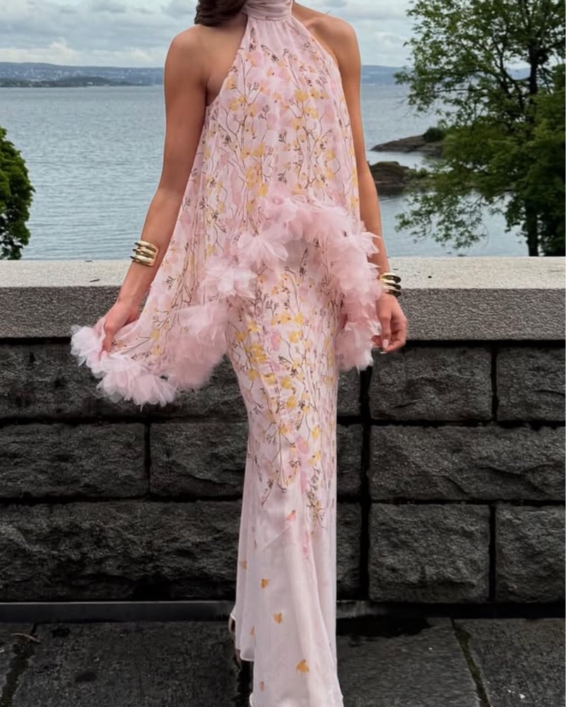 Elliott Tulsia Floral Cape Maxi Dress in pink. So gorgeous, fun, and flattering! Would fit size S-L, 5’4 - 5’9