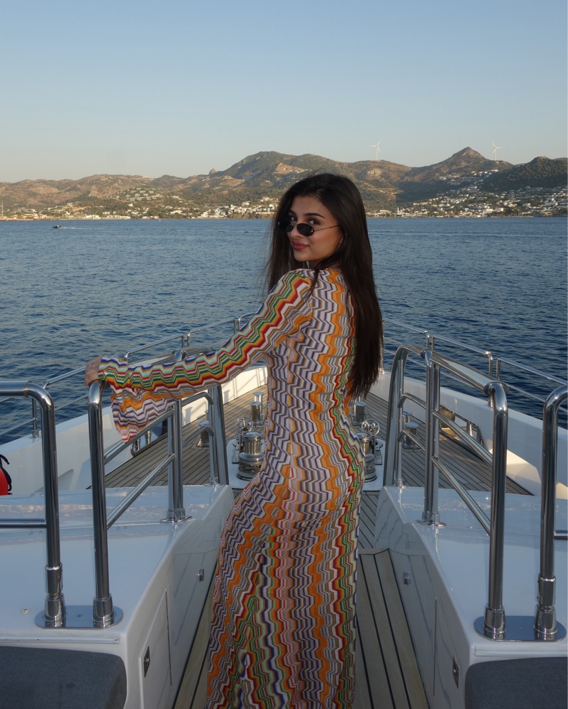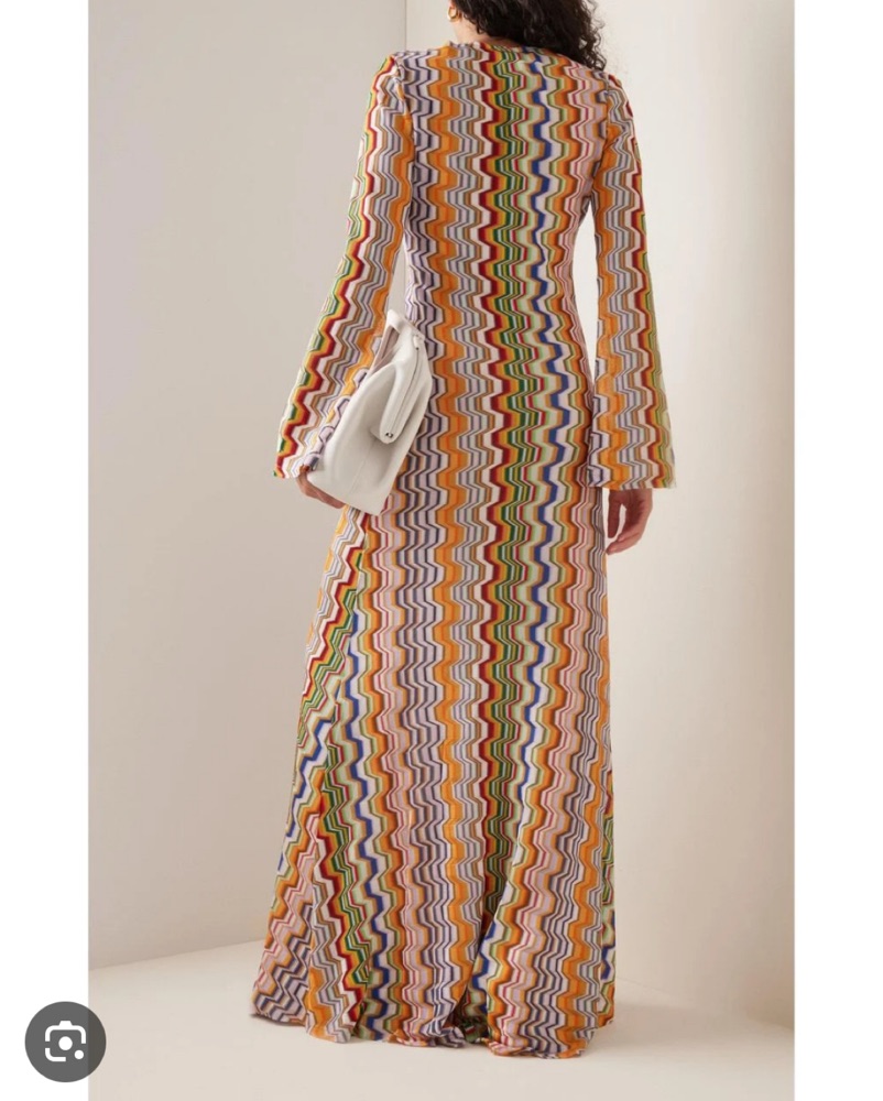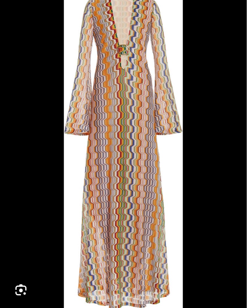 With a plunging keyhole neckline, a touch of gold hardware flared sleeves, and a wavy chromatic knit, the body kissing Vibe dress is a '70s dream. Super cute dress! Looks similar to missoni. I wore it once in bodrum and got a TON of compliments! Freshly dry cleaned
