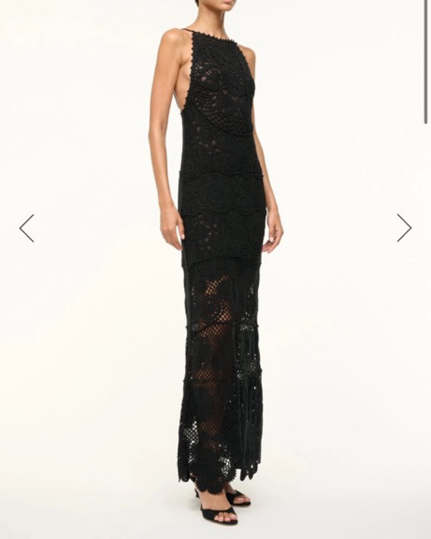 Beautiful crochet lined dress with scalloped detail. Size is listed as “XS/S” see size chart photo. Would say fits more like a S and is somewhat stretchy. Beautiful black dress!
