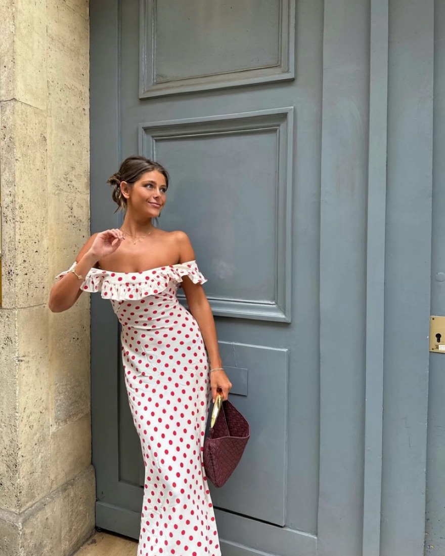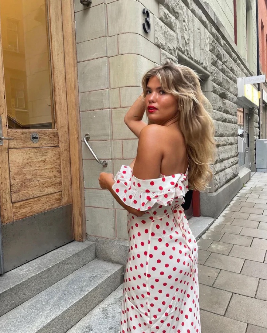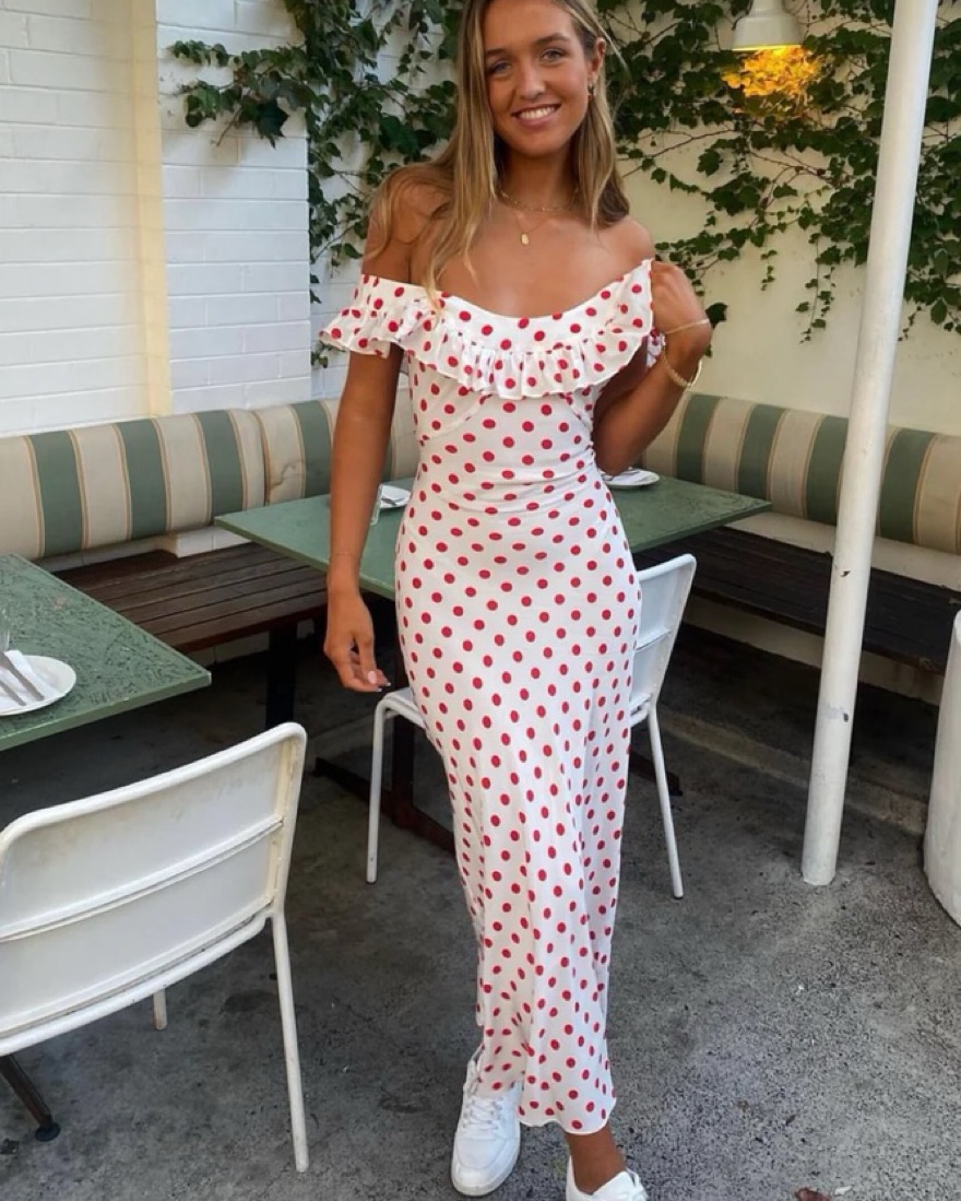 Red and white polka dot dress from realisation par, limited edition collaboration with claudia schiffer ❤️🤍