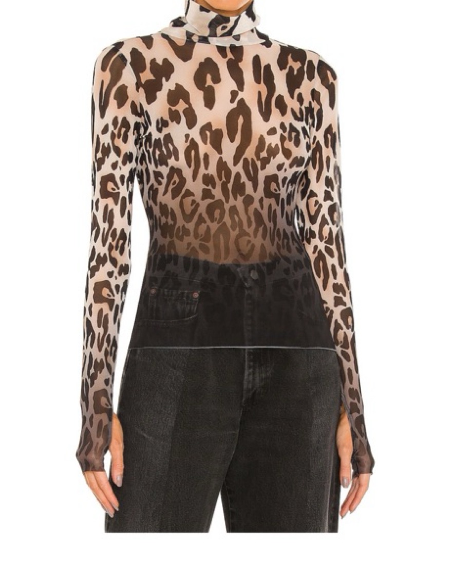 This eye-catching leopard print shirt is perfect for a night out. The mock neck and long sleeves create a sophisticated look, while the form-fitting silhouette flatters the figure.