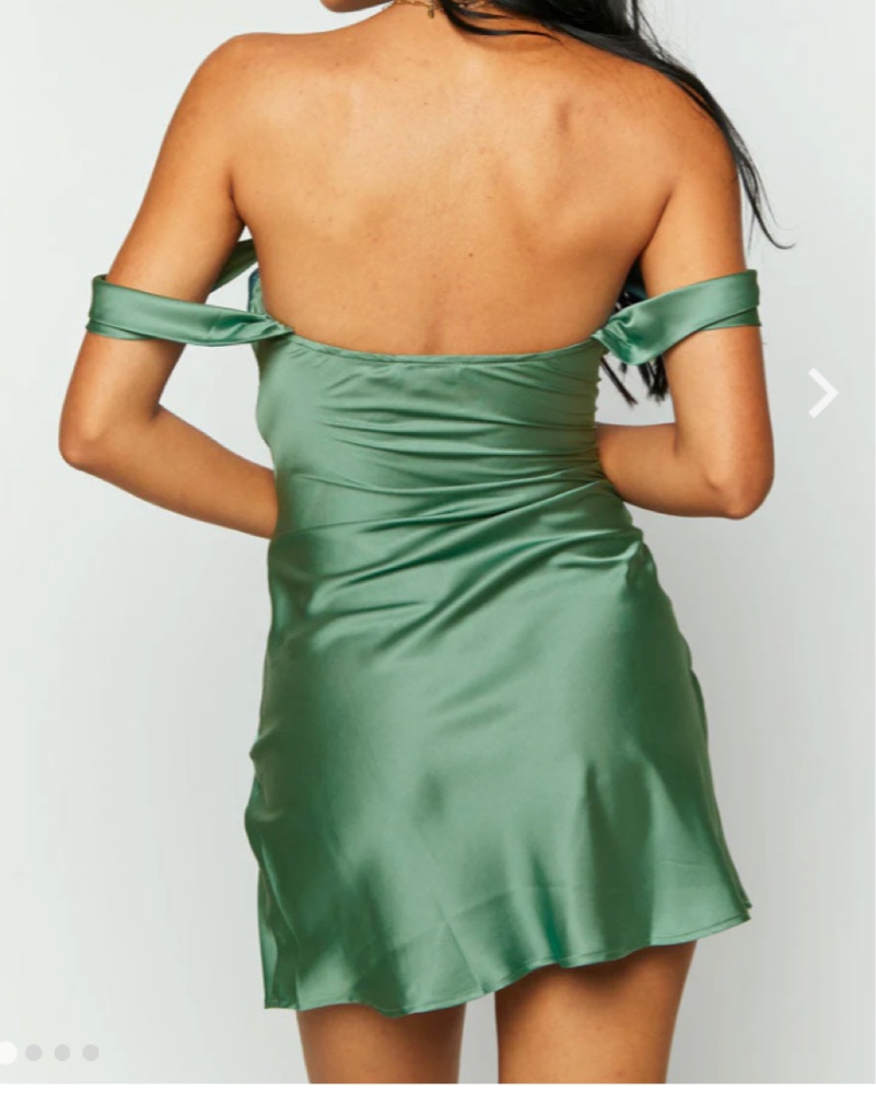 Zoella Green Off The Shoulder Mini Dress by Beginning Boutique - Pickle