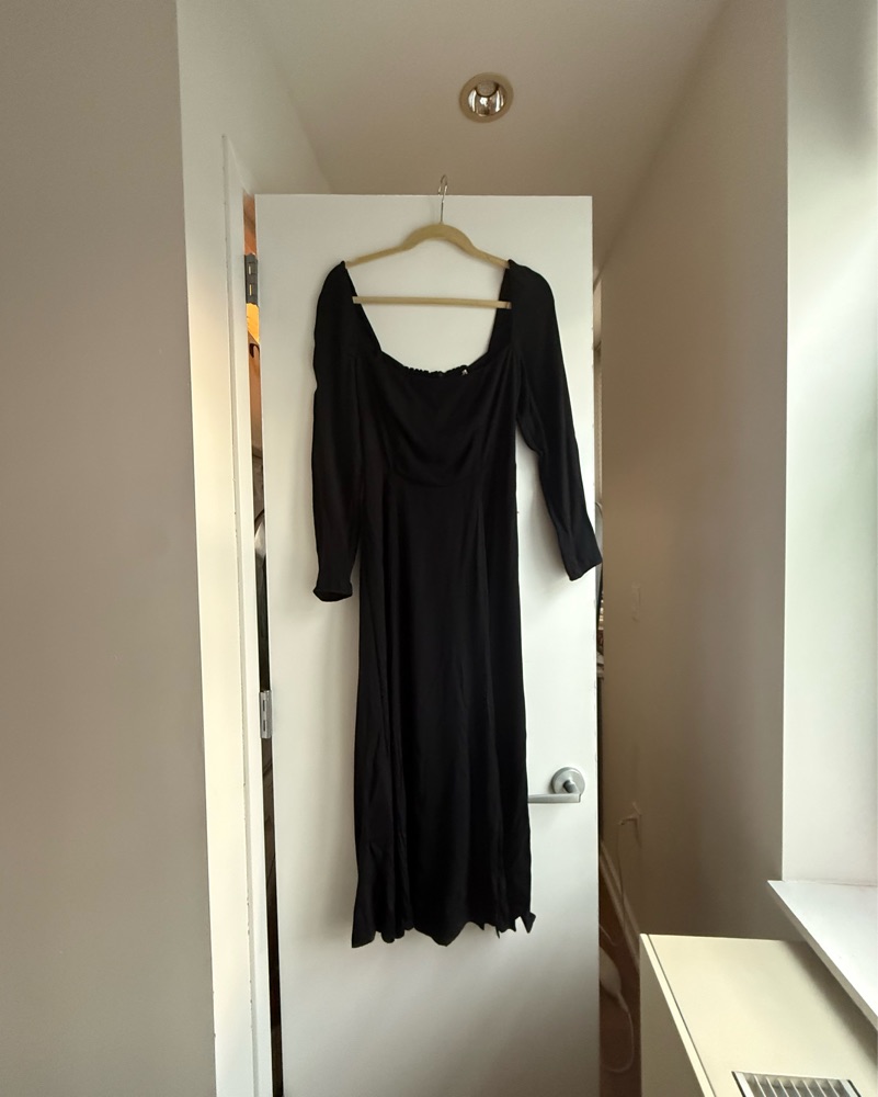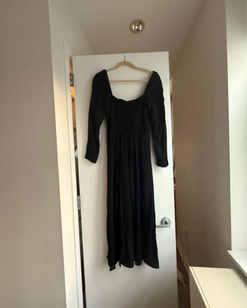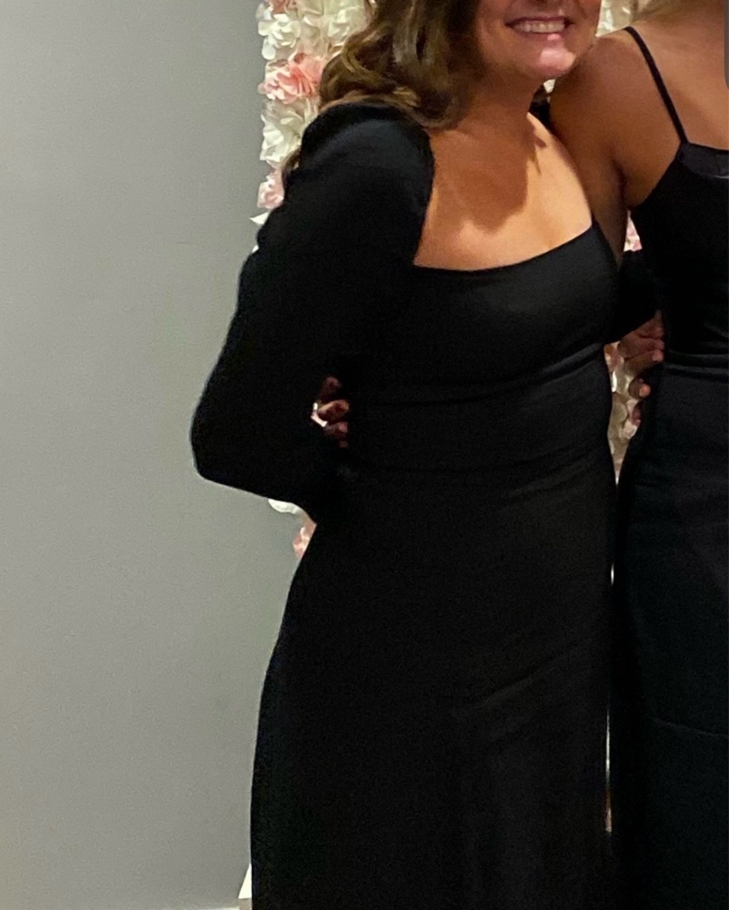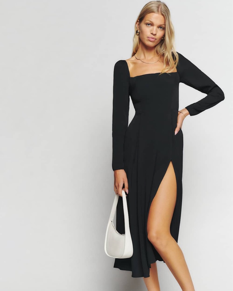 Sigmund Midi Dress. This has been the dress everyone asks to borrow as it is flattering on all. This chic black maxi dress is perfect for a formal occasion. The long, flowing silhouette and puff sleeves create a glamorous, sophisticated look.