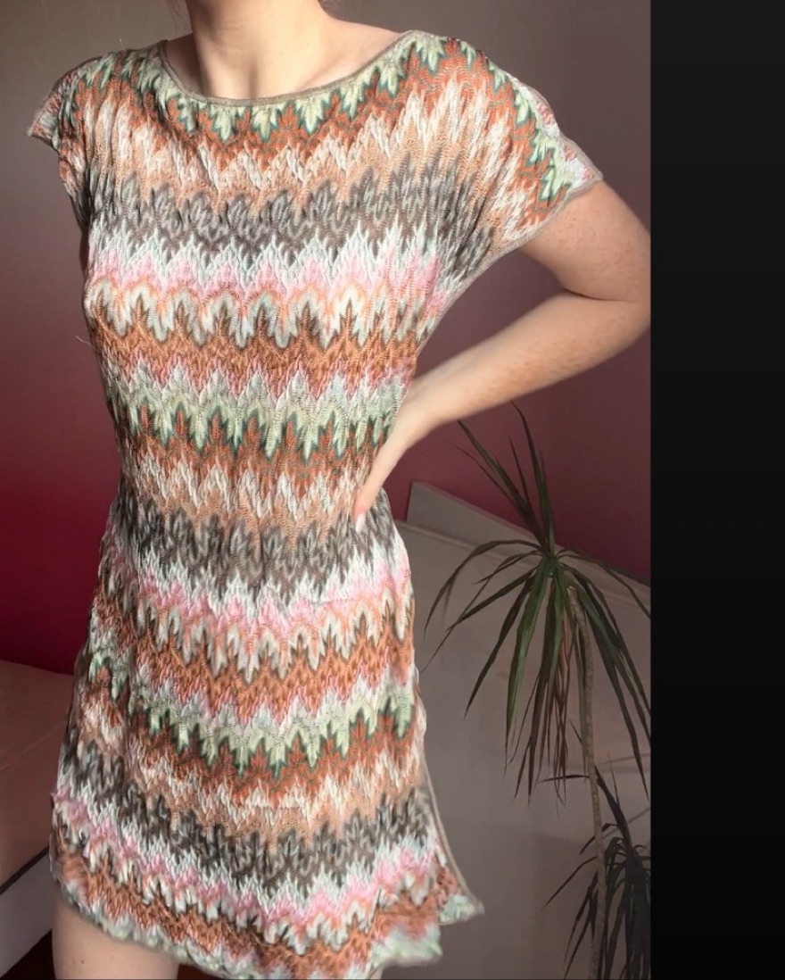 Most beautiful Missoni Mare vintage colourway in PERFECT CONDITION, love to belt or pull off shoulder with heels as a mini or designer getaway beach coverup! Photo-worthy day to night option for your vacation✈️🌊 Please be careful of snags due to iconic Missoni signature crochet! Slit side, fit XS-M