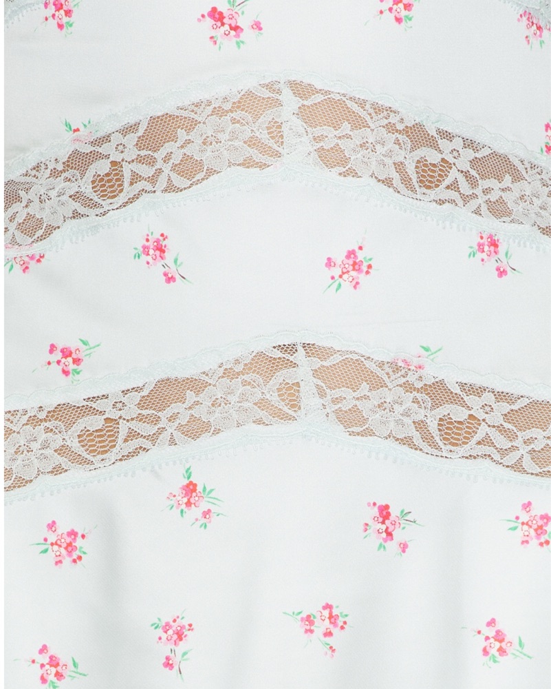 “tiny bouquet” | midweight satin fabric with lace trim | unlined | hidden side zipper | self tie shoulder straps