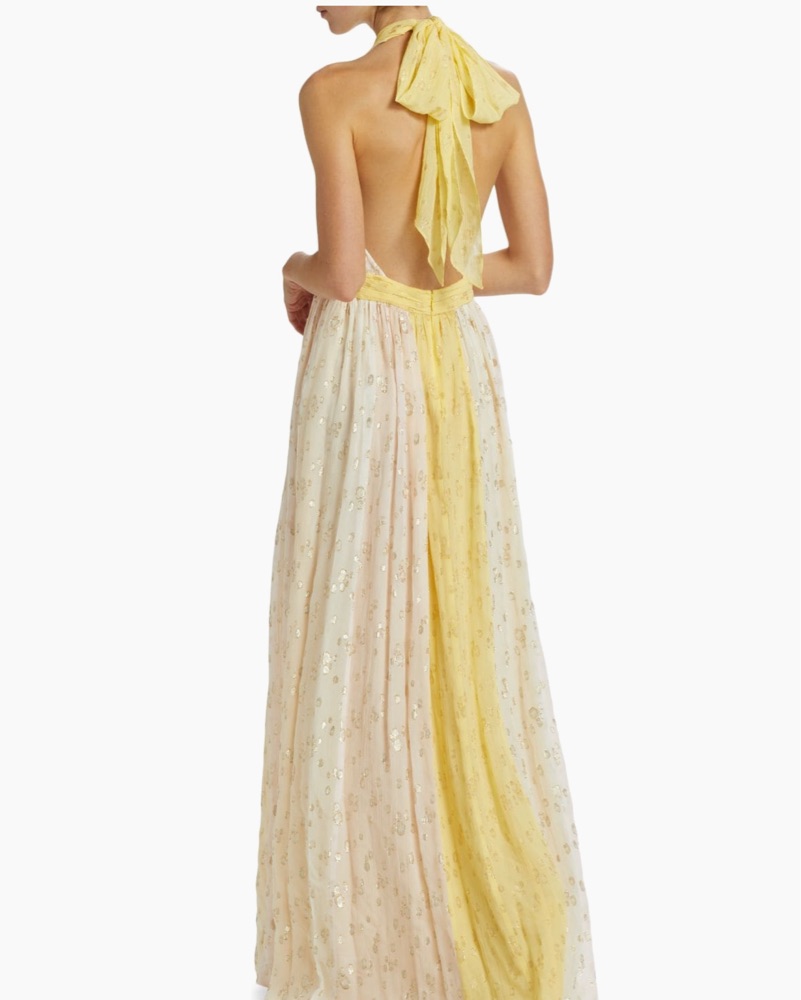Ramy Brook Leigh Metallic Halter Gown