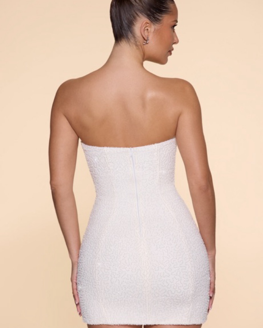 Oh Polly Basel Embellished Cream Cowl Neck Mink Dress