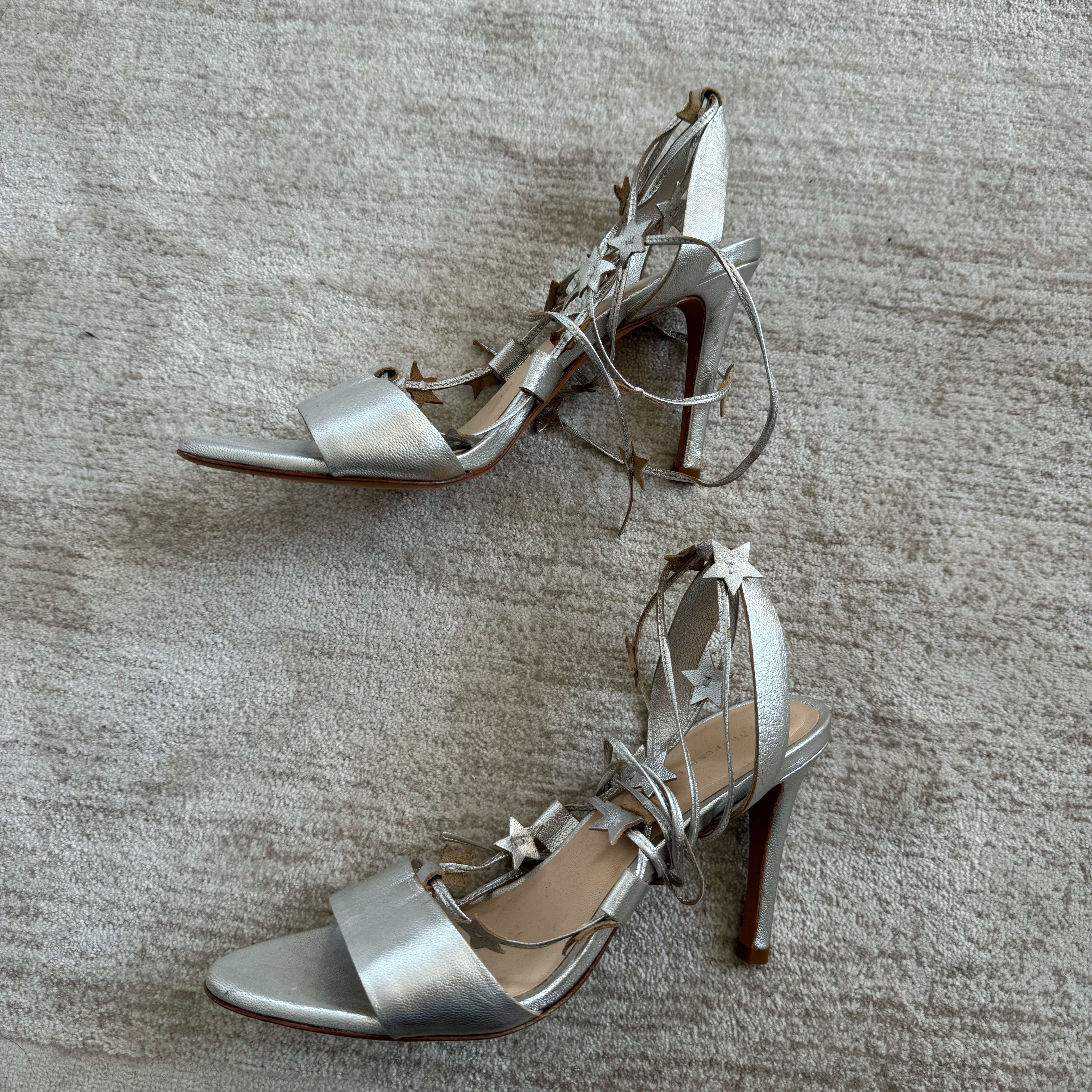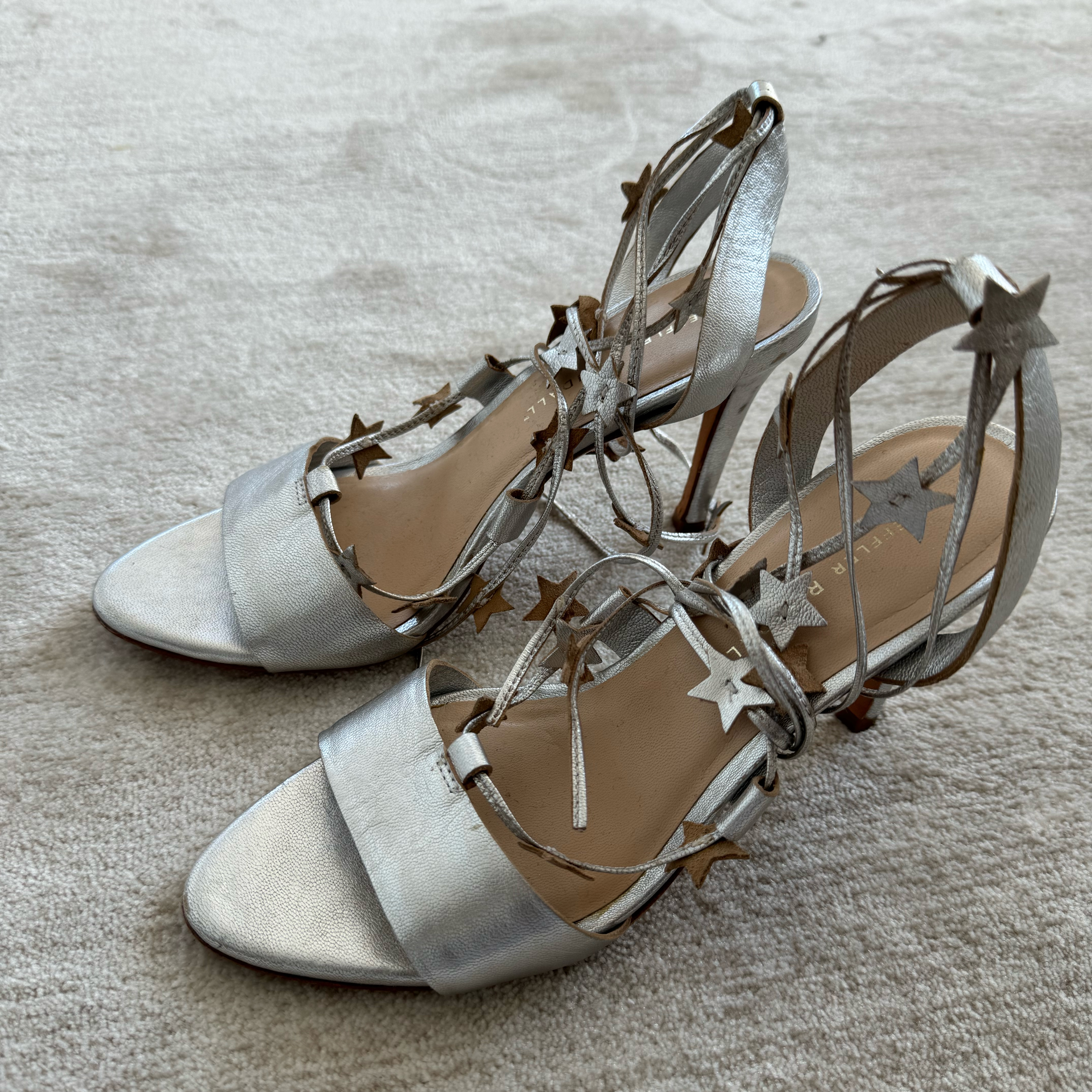 Loeffler Randall Arielle Strappy Heel Silver. Leather silver stars. So pretty with a dress. Wear at soles