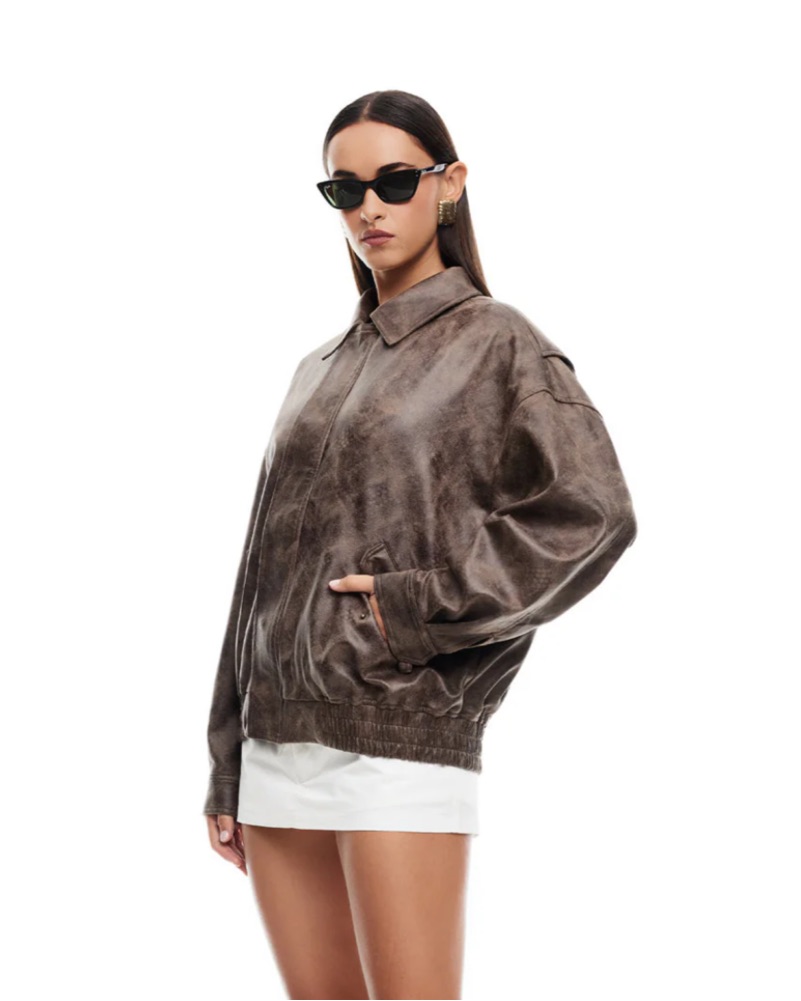Lioness Kenny Faux Leather Bomber by Lioness - Pickle