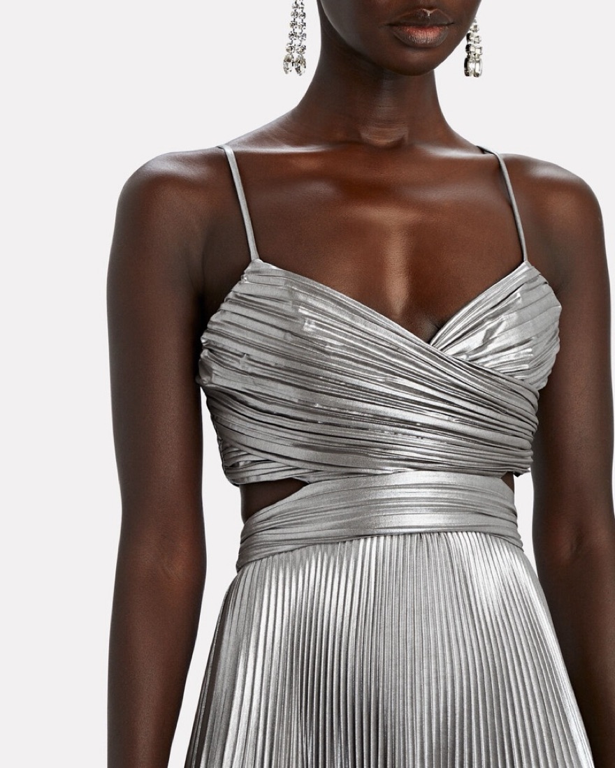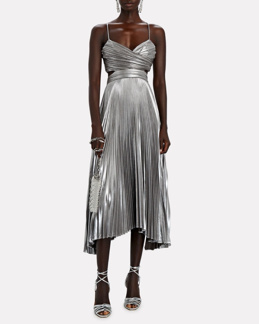 A.L.C. Pandora Pleated Metallic Midi Dre