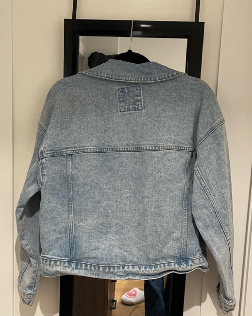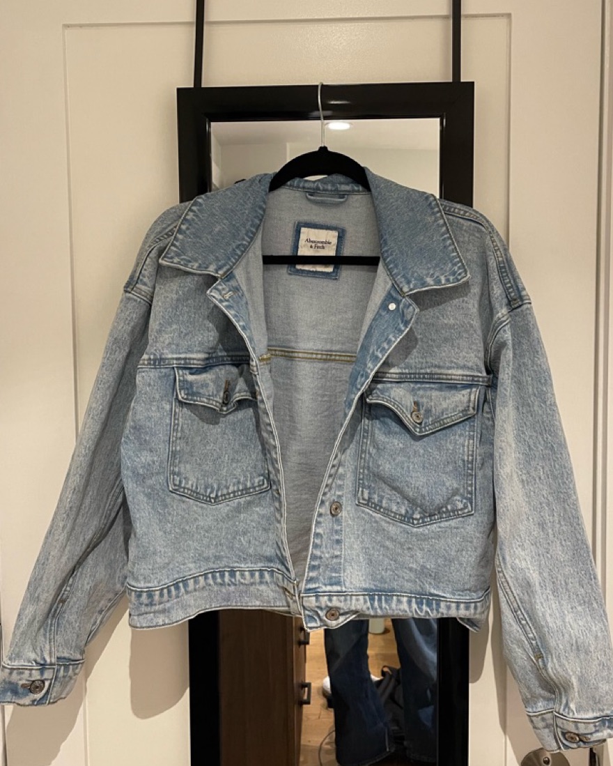 Abercrombie Light Wash Cropped Boxy Denim Jacket, Size Medium. Used, in good condition! Denim is a bit stiff but would soften up with a wash with fabric softener.