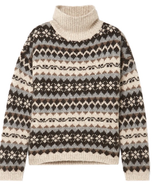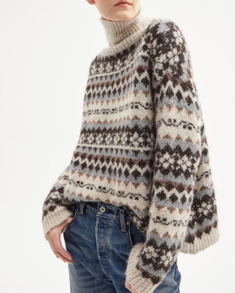 This cozy turtleneck sweater features a stylish fairisle pattern that is perfect for wearing on a chilly. Please return dry cleaned 🤍